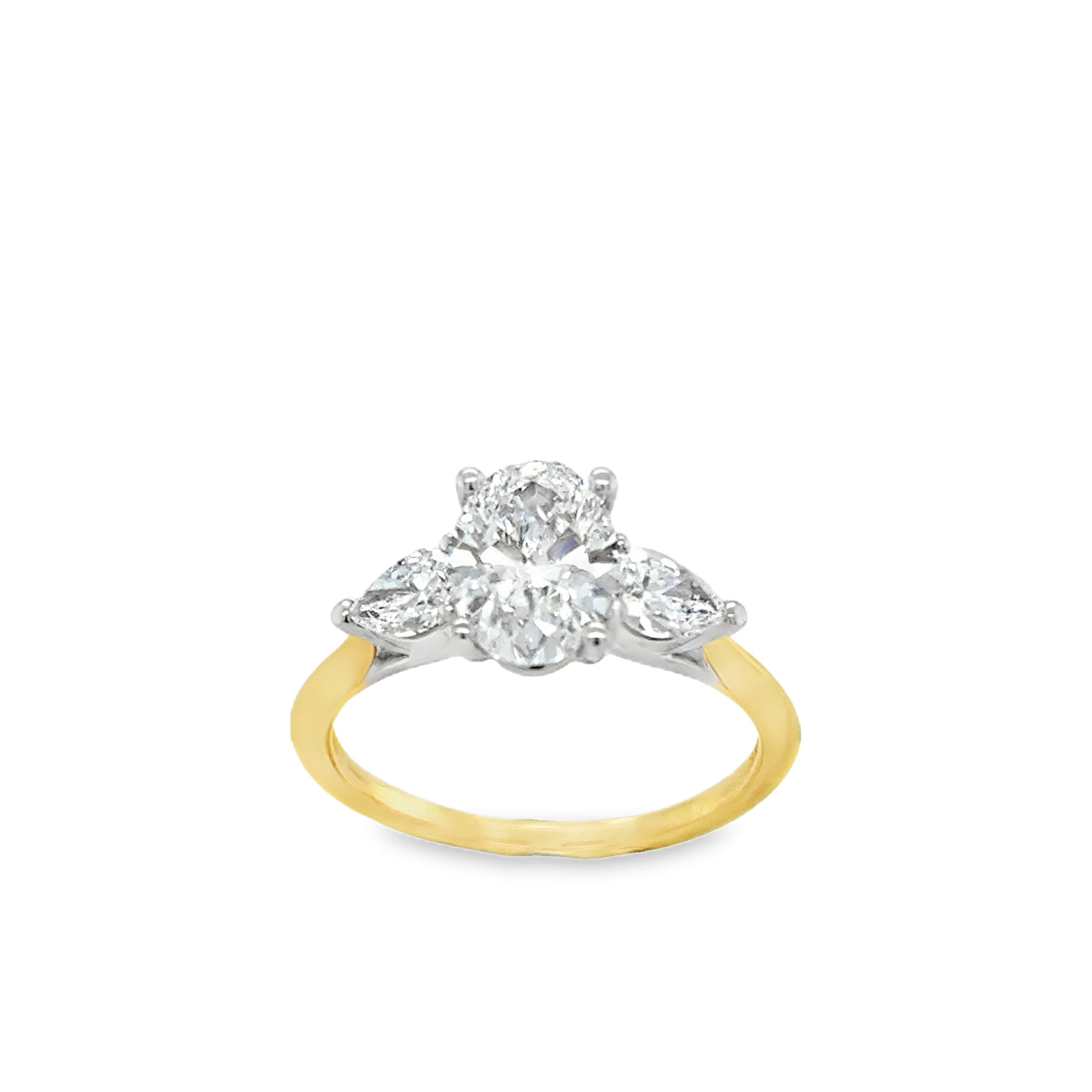 18ct 3 Stone Cultured Diamond Oval Centre Stone With Cultured Pear Cut Shoulders 2.10ct