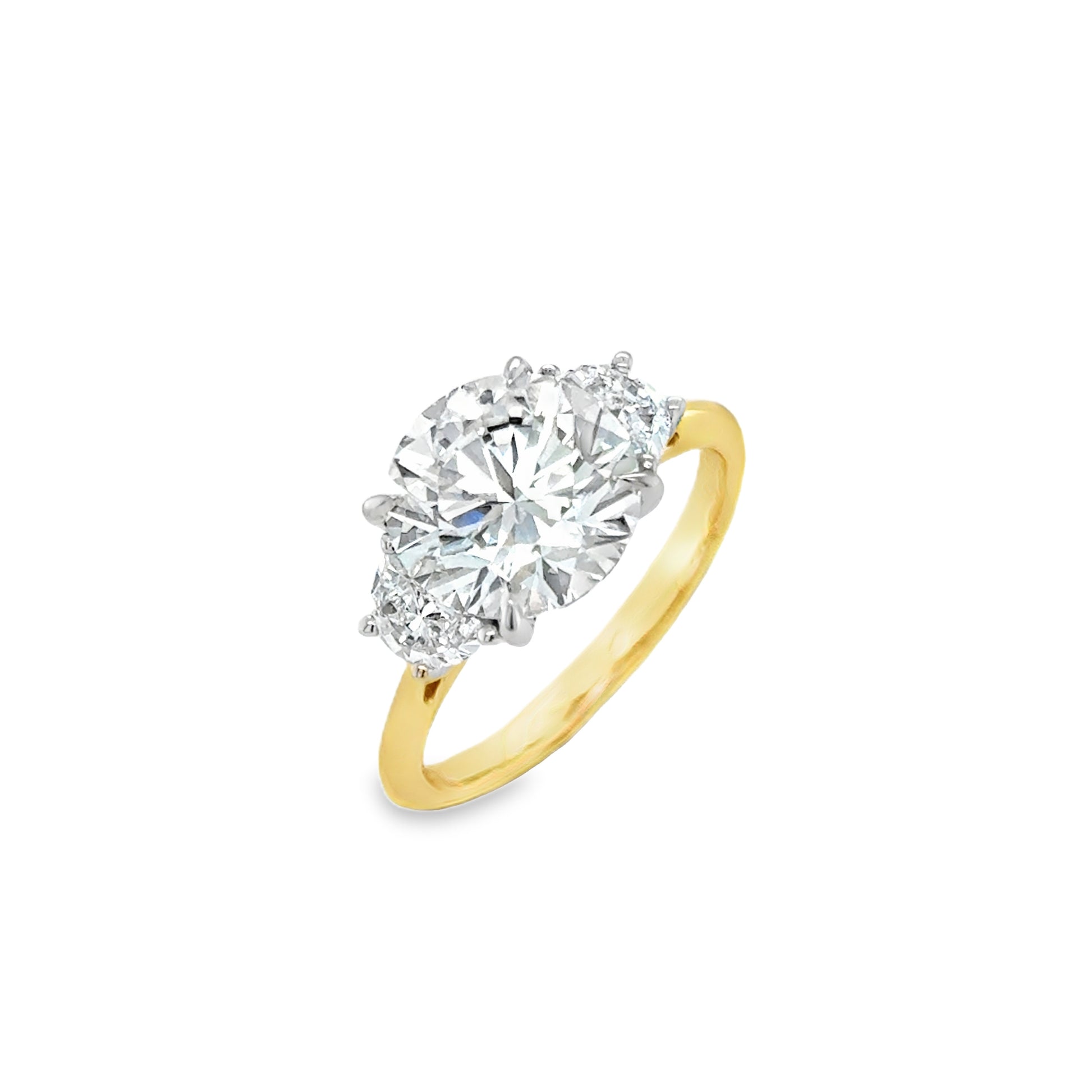 18ct 3 Stone Round Brilliant Cultured Diamond Ring With Demi-Lune Side Stones 3.55ct