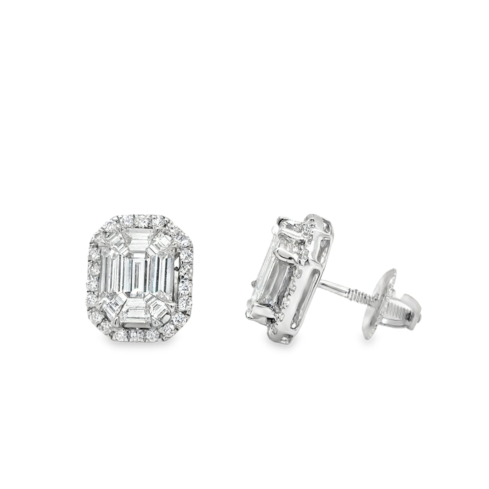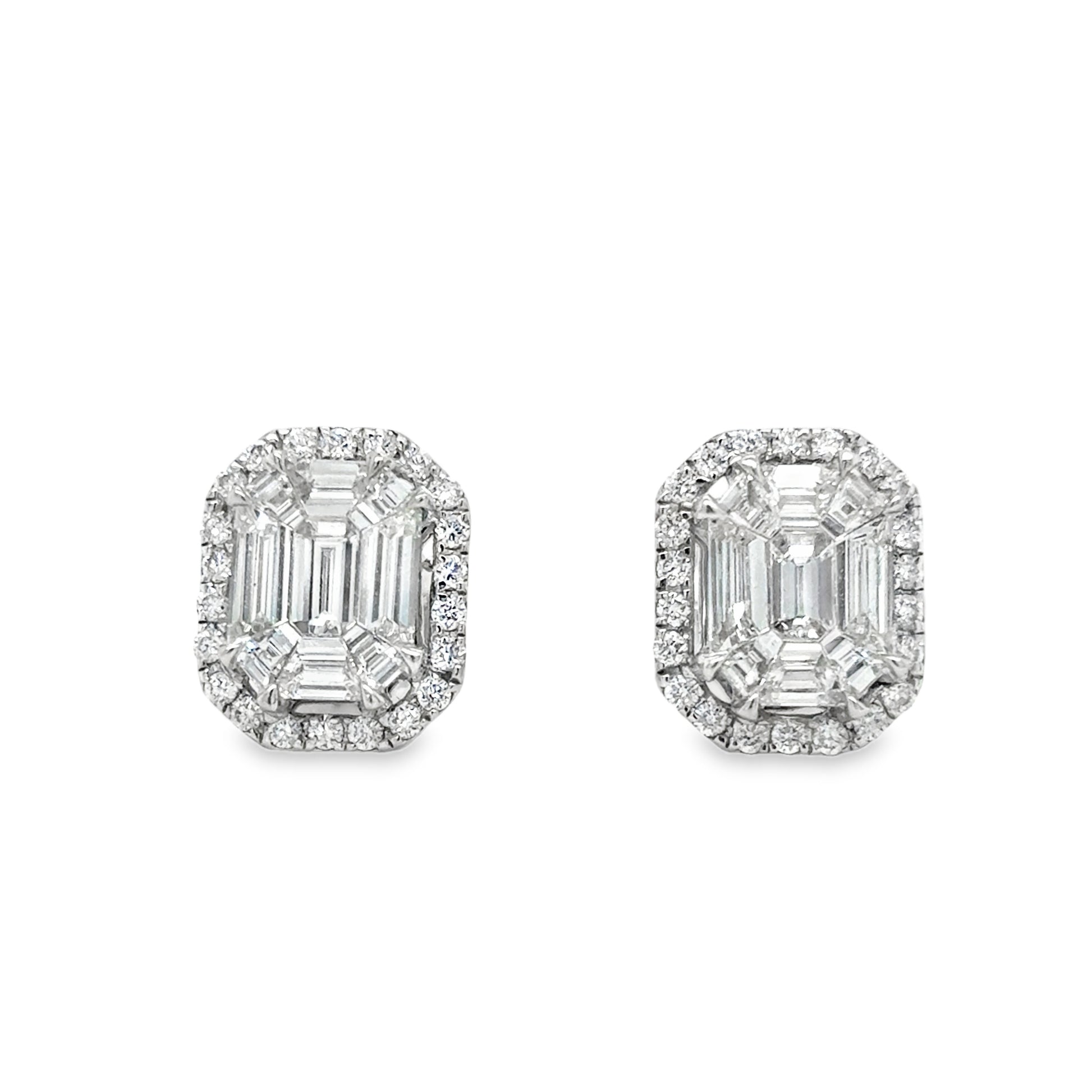 18ct White Gold Emerald Pie Cut 1.20ct Diamond Earring