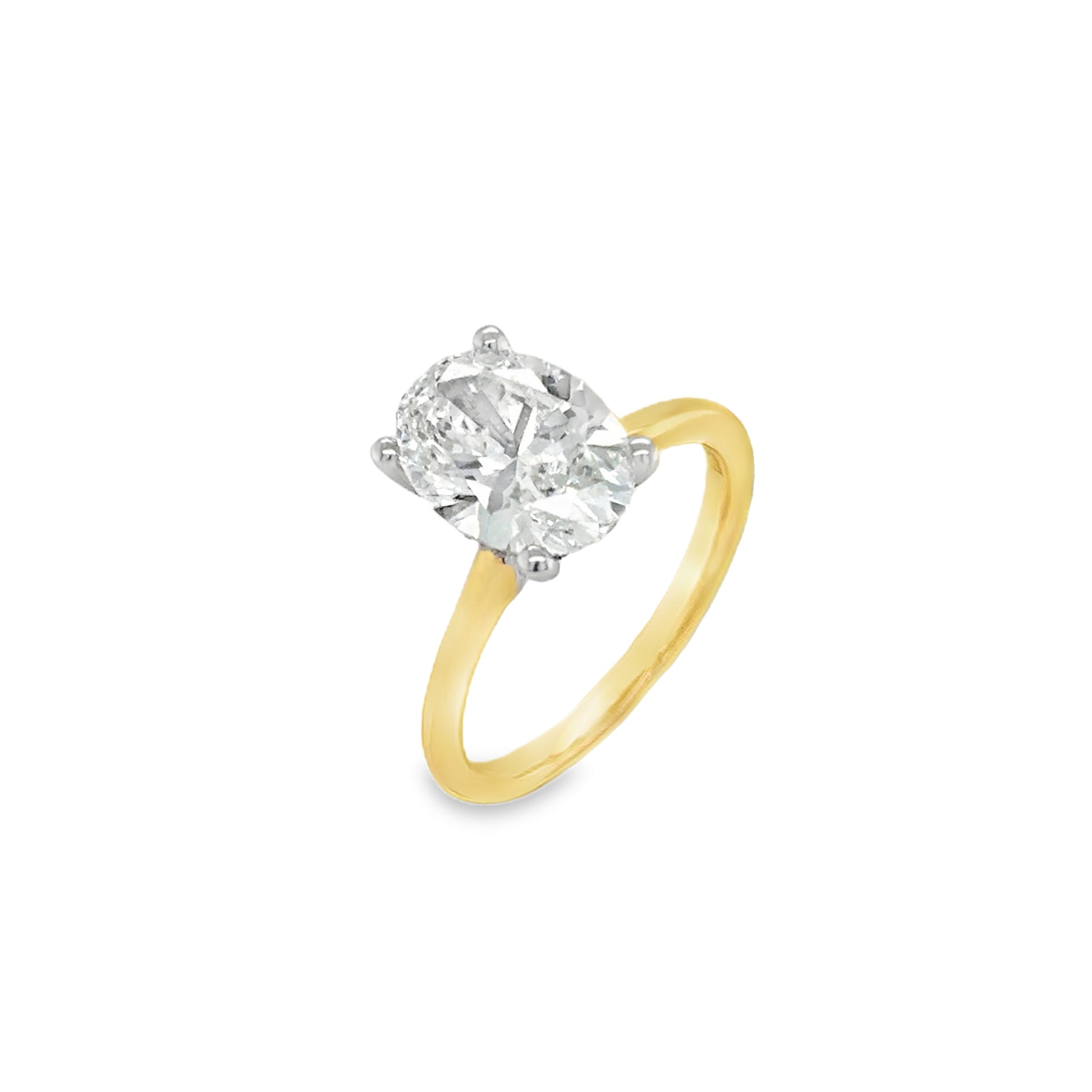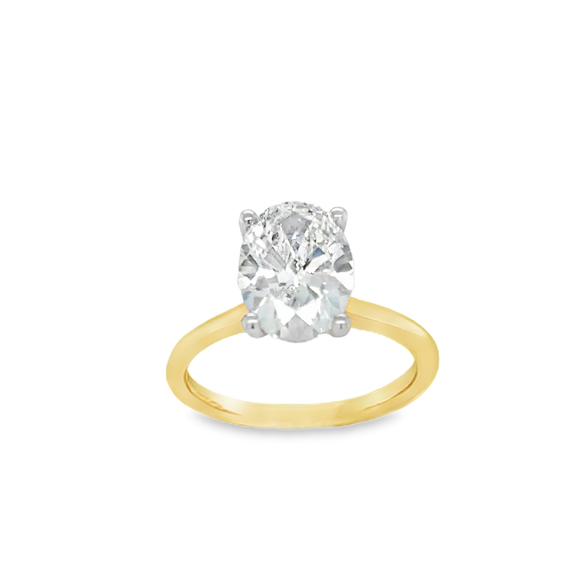 18ct Oval Solitaire 4 Claw Cultured Diamond Ring With Hidden Halo 2.17ct