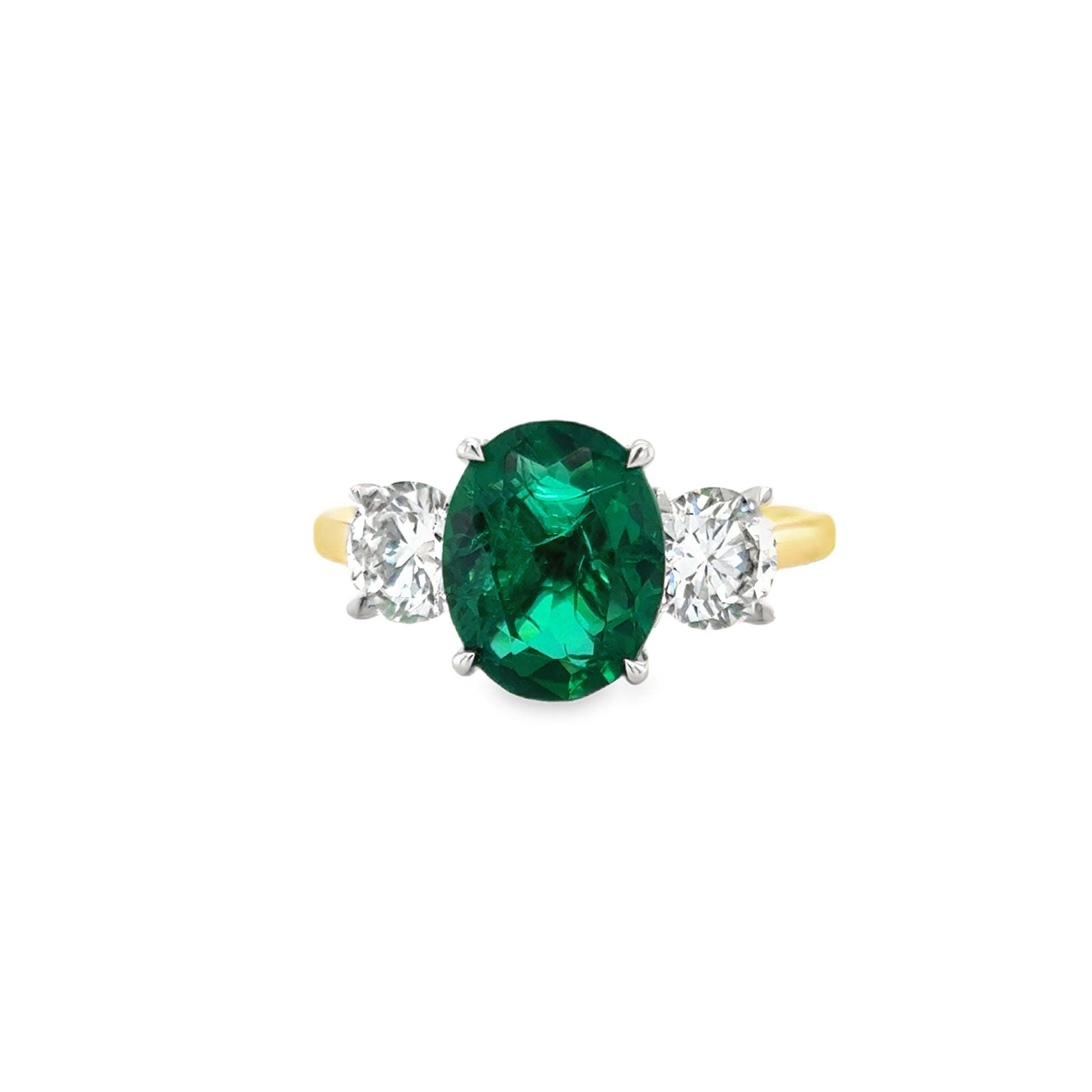 9ct 3 Stone Cultured Oval Emerald With Cultured Diamond Shoudlers 1.00ct