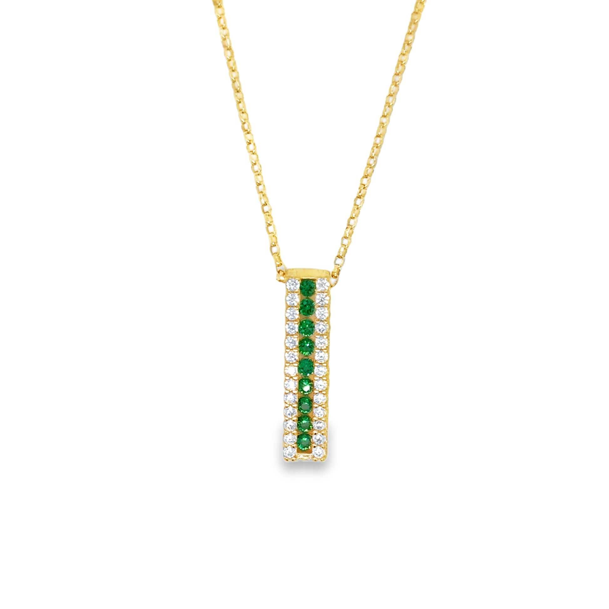 9ct Cubic Zirconia & Green 3 Row Vertical Bar Pendant