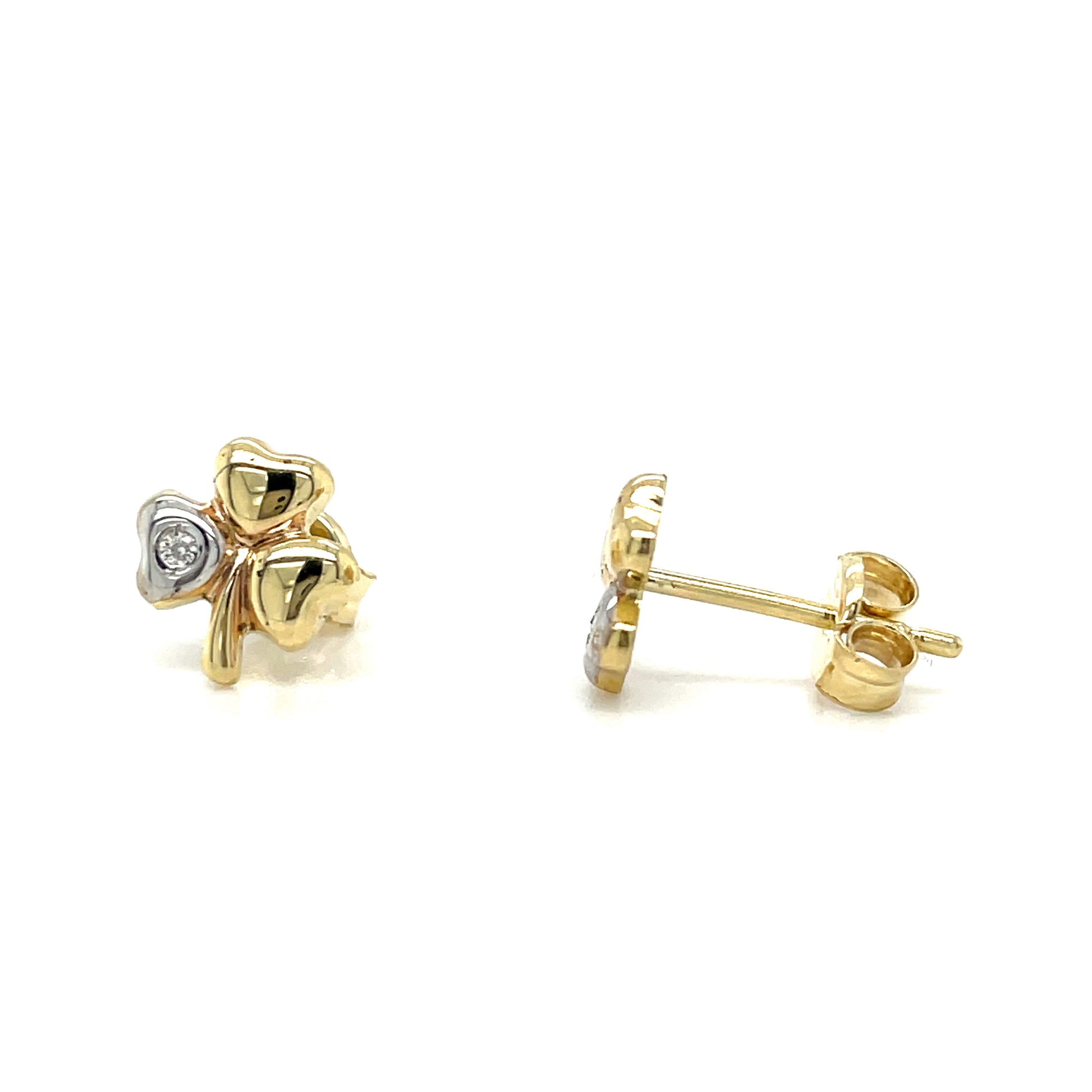 9CT Cubic Zirconia Two Tone Shamrock Stud Earring