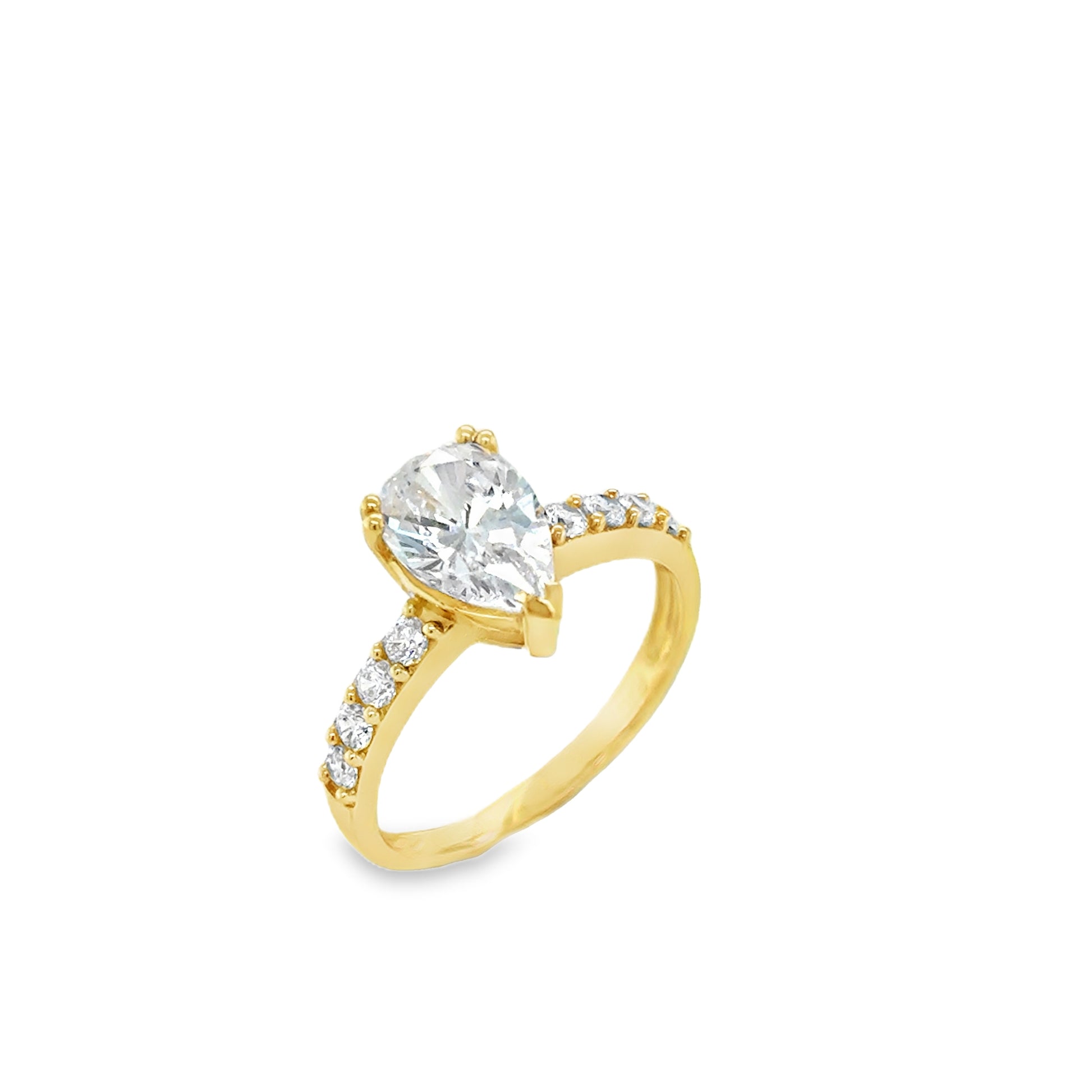 9ct CZ Pear Solitaire Ring With Stone Set Shoulders