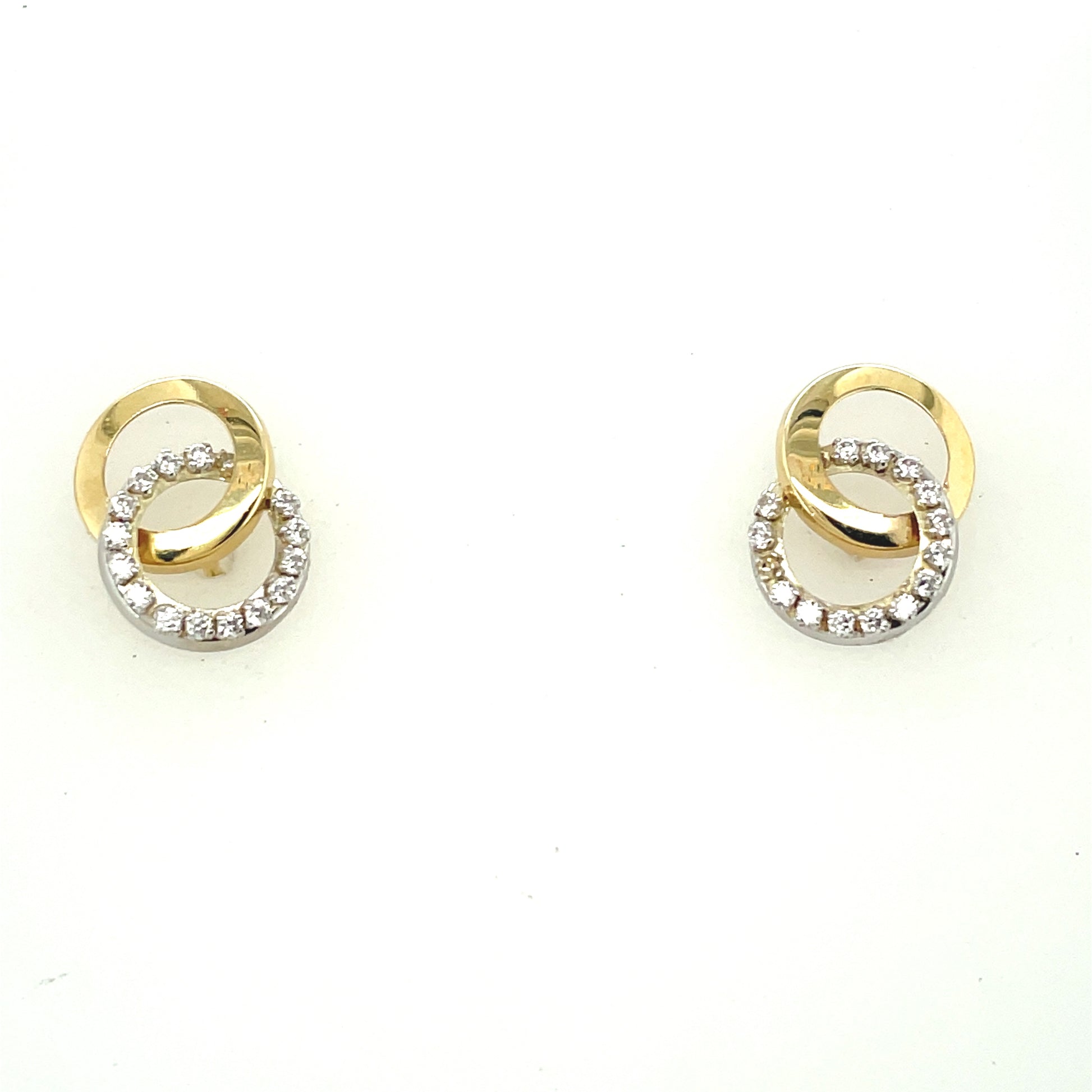 9ct Two Circle Link Cubic Zirconia Stud Earring