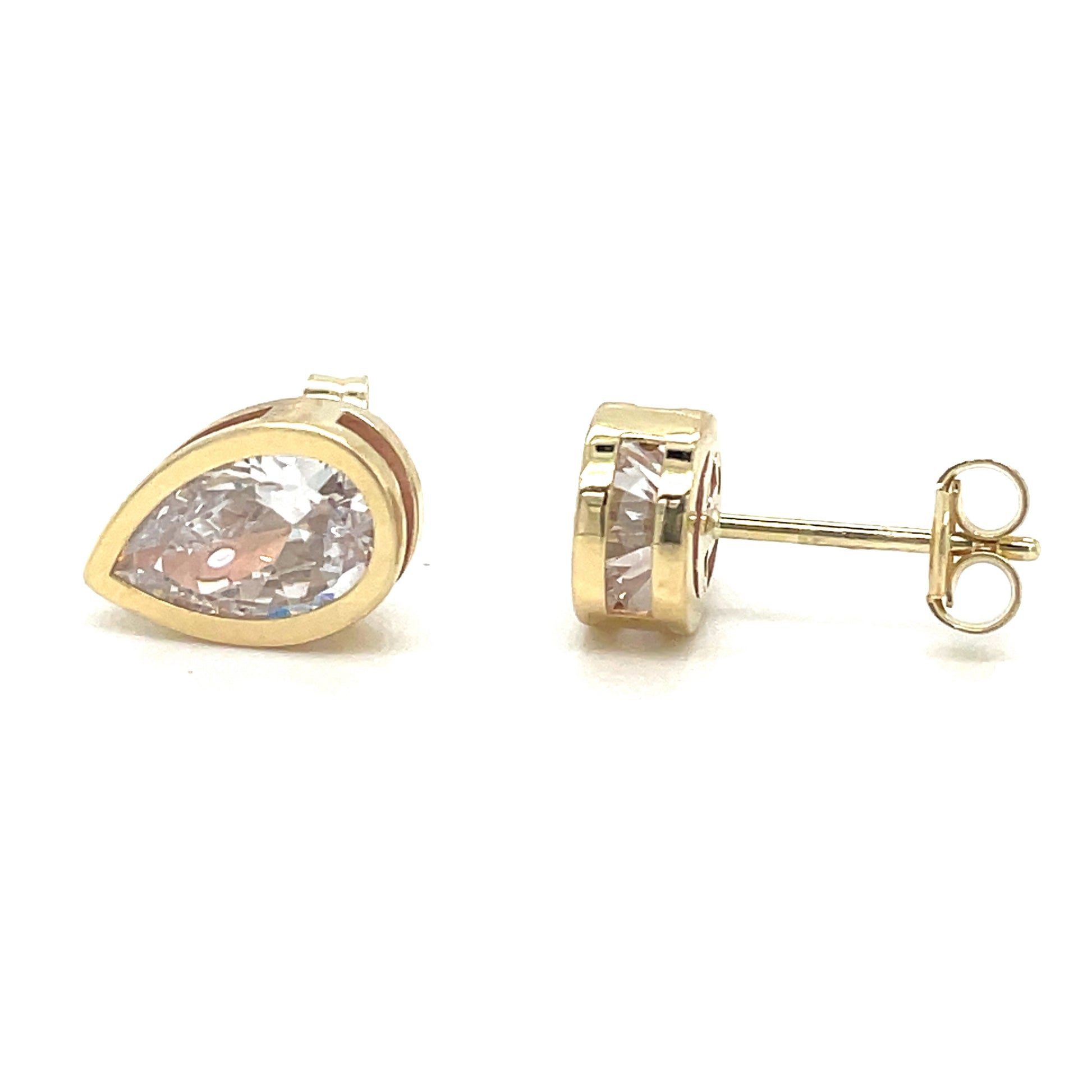 9ct Gold Cubic Zirconia Pear Rubover Stud Earring