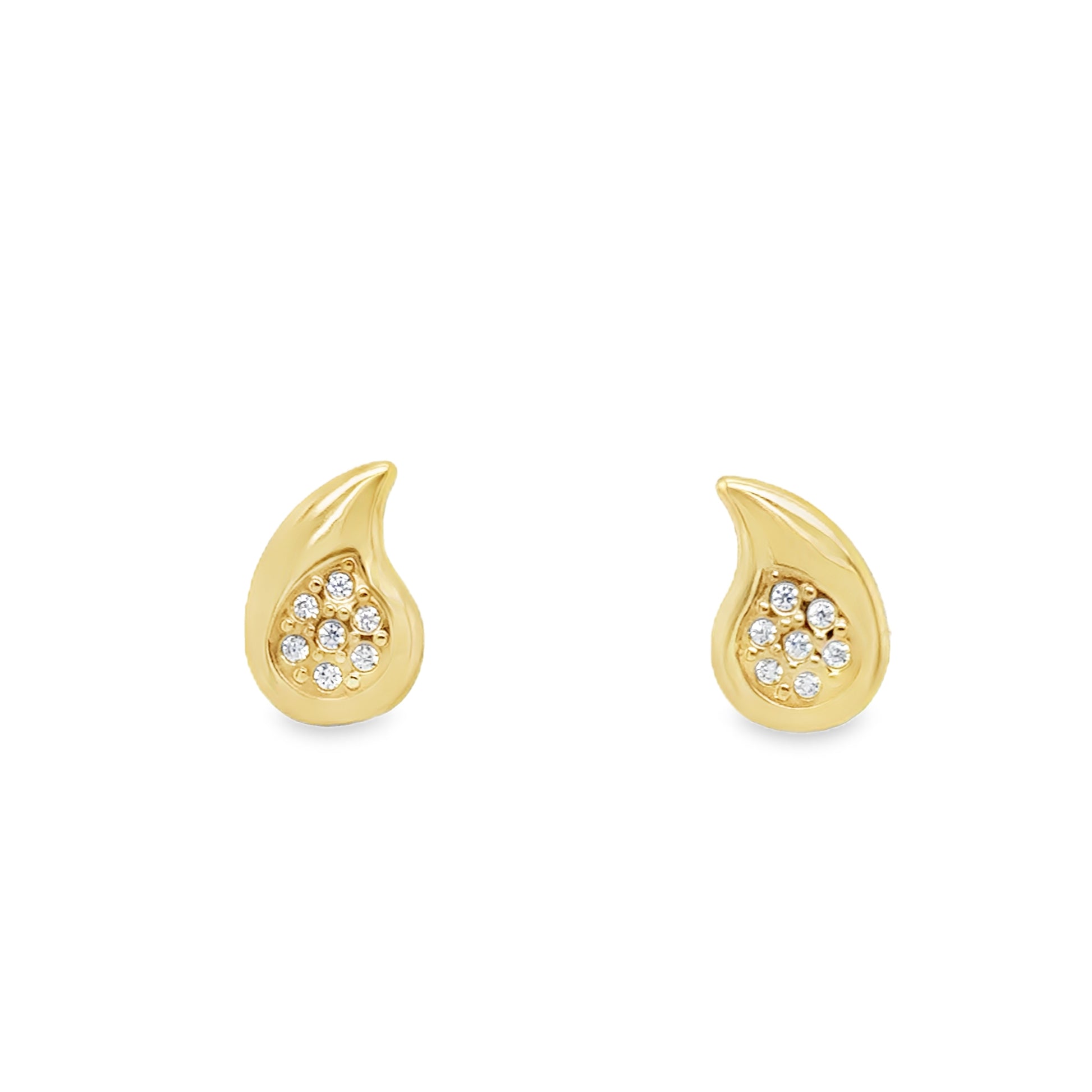 9ct Yellow Gold CZ and Polished Teardrop Stud Earring