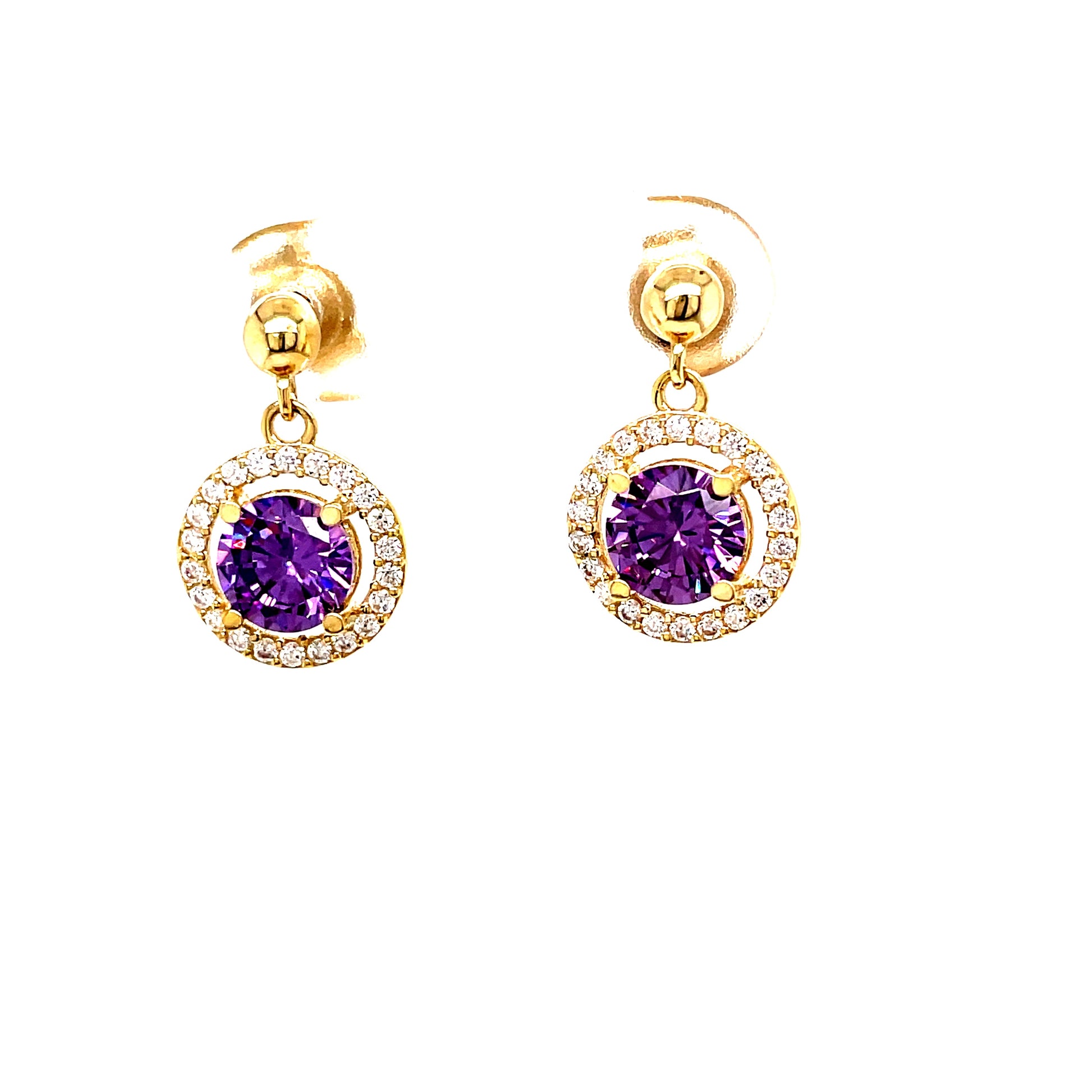 9ct Cubic Zirconia And Synthetic Amethyst Cluster Drop Earring