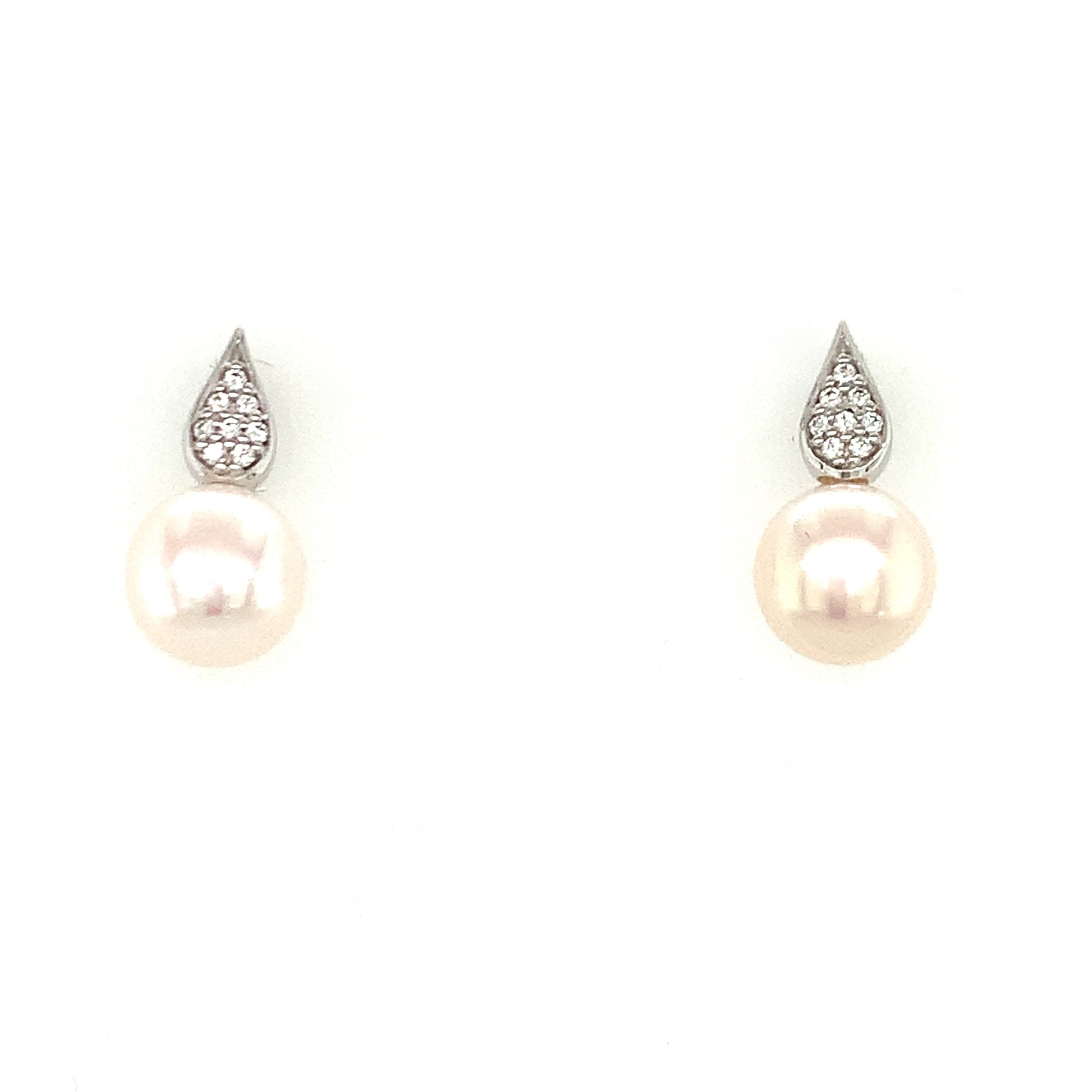 9ct White Gold Pearl And Cubic Zirconia Earrings