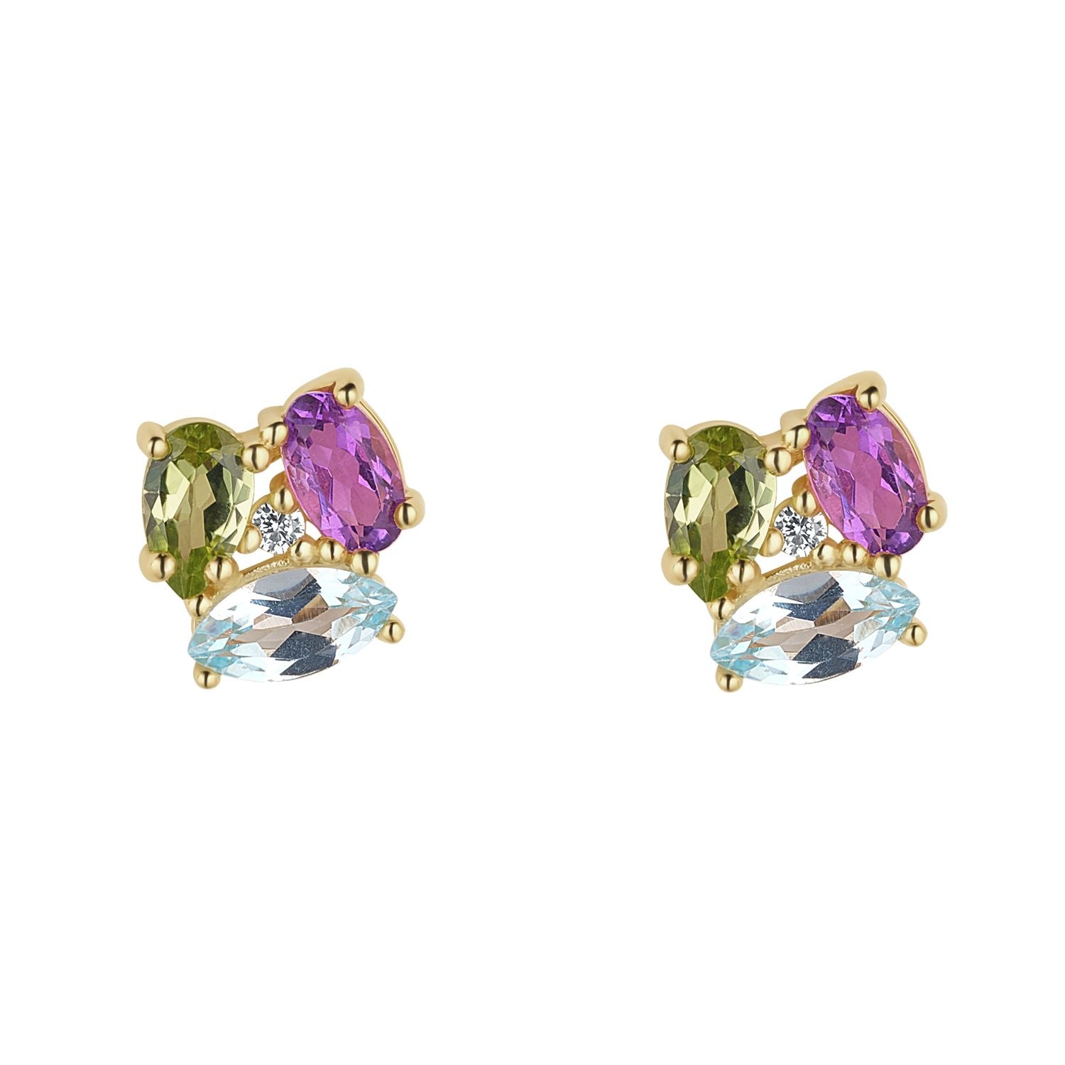 9ct Amethyst, Blue Topaz And Peridot Cluster Stud Earring