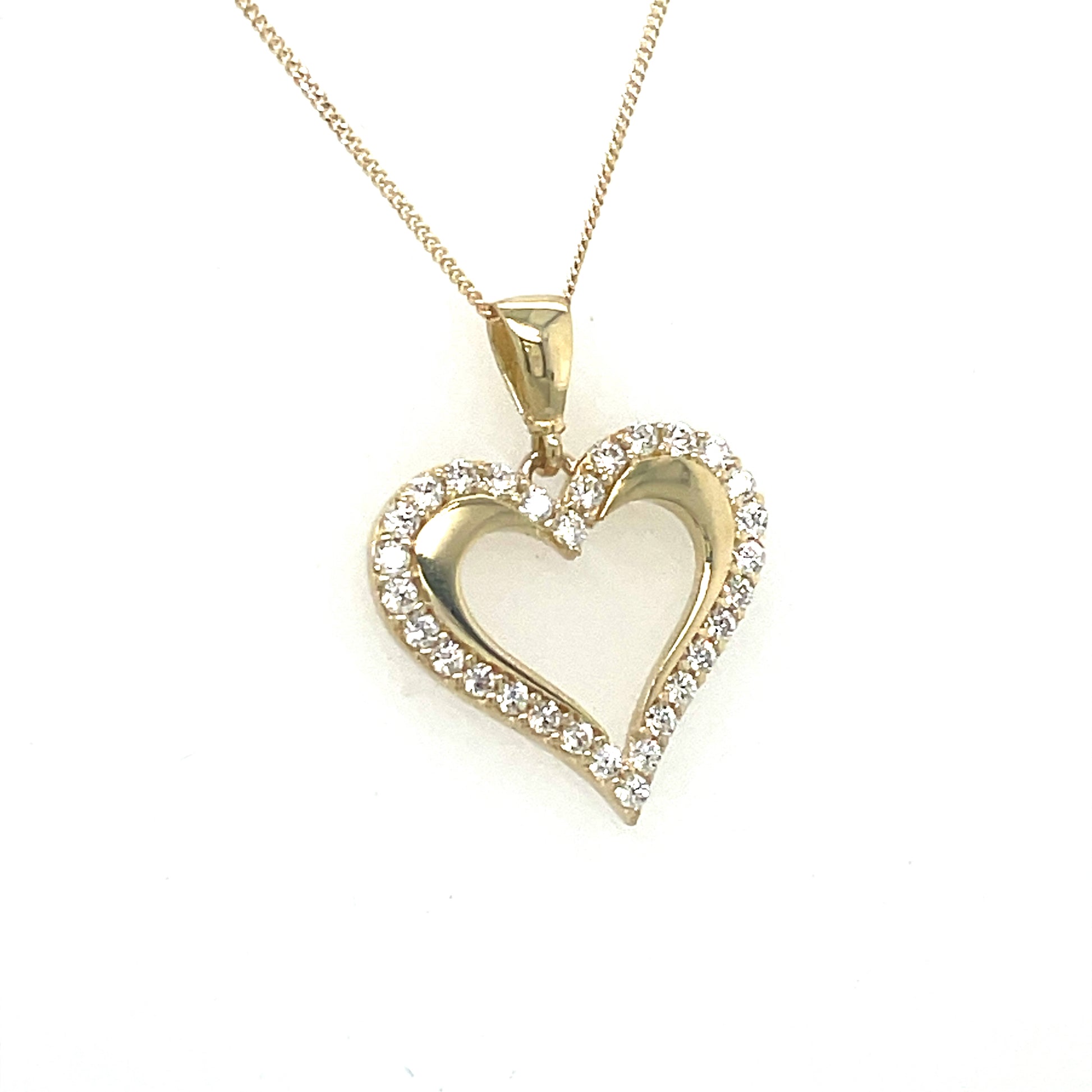 9ct Gold Open Heart Cubic Zirconia Pendant