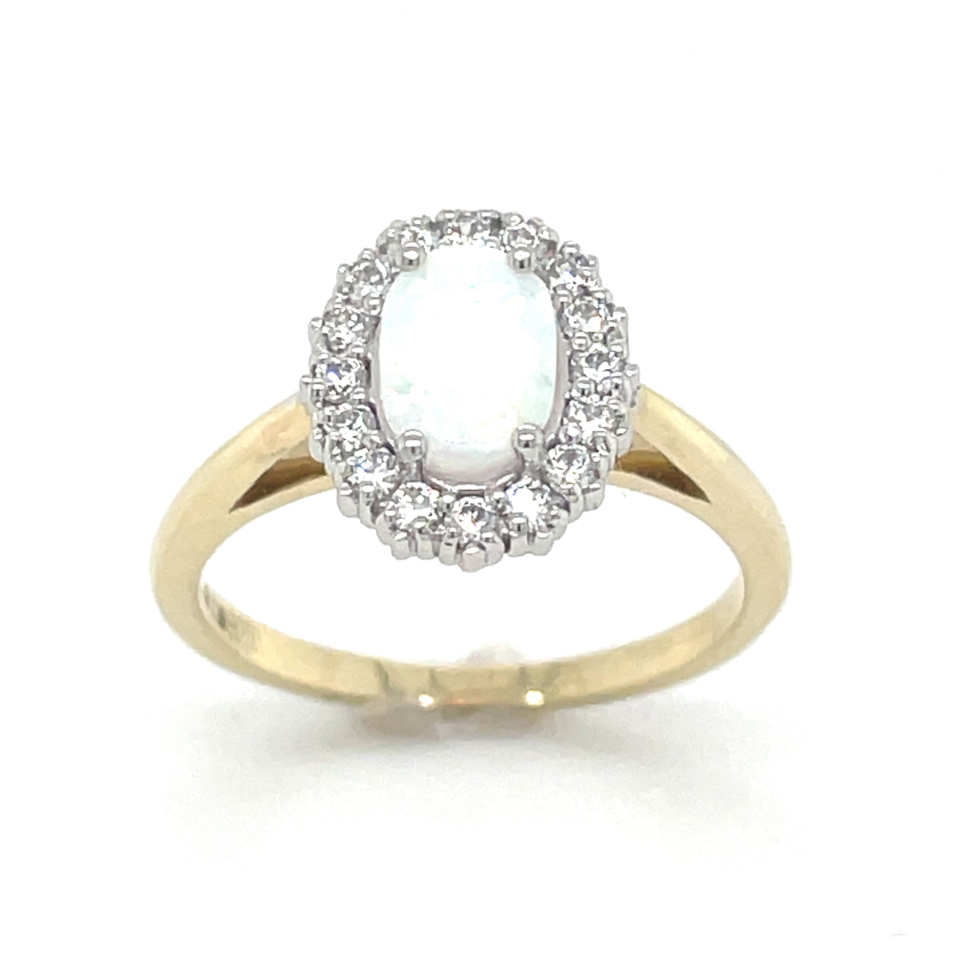 9ct oval Opal + cubic zirconia cluster ring