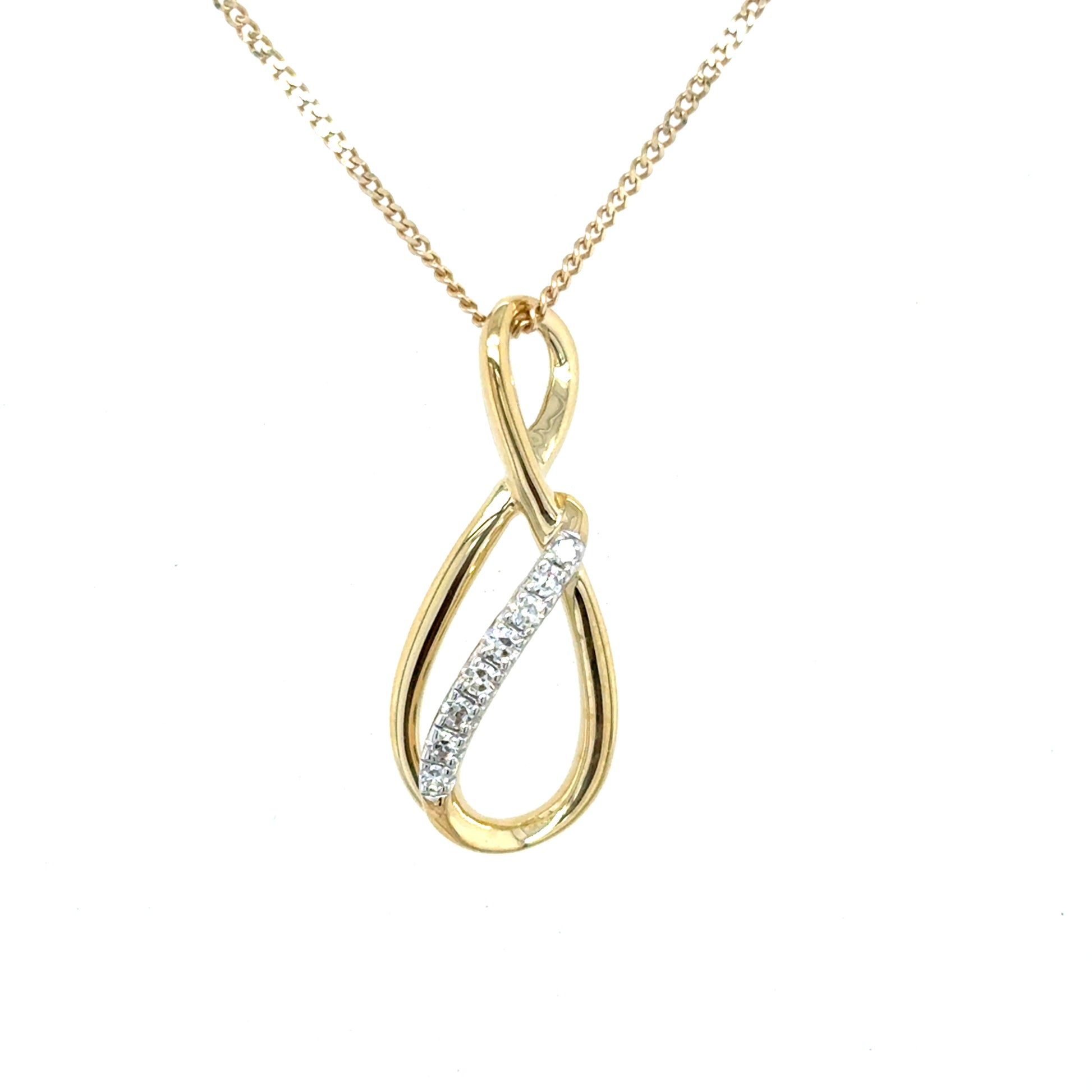 9ct Yellow Gold Diamond Set Infinity Pendant .05ct