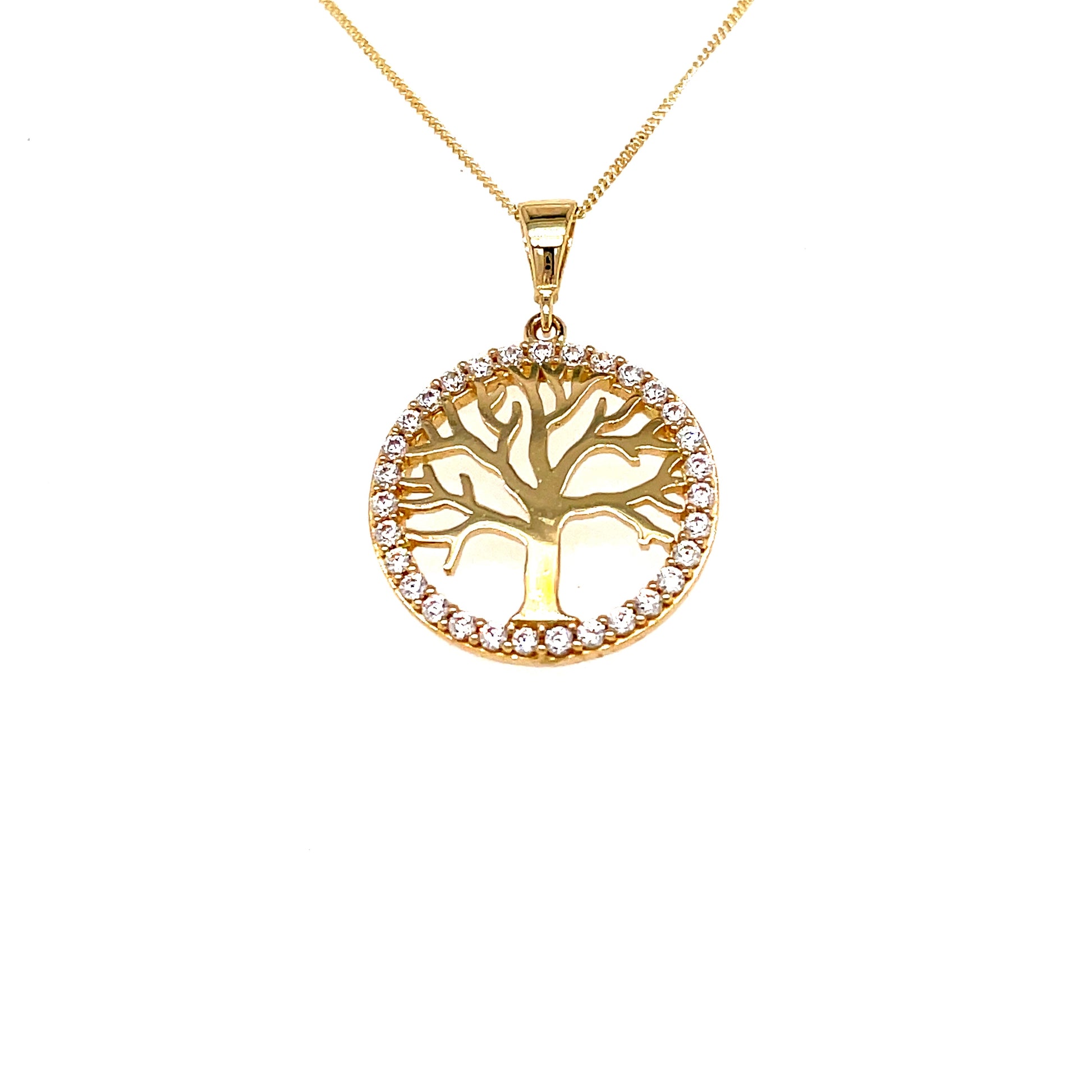 9ct Gold Open Tree Of Life Cubic Zirconia Pendant