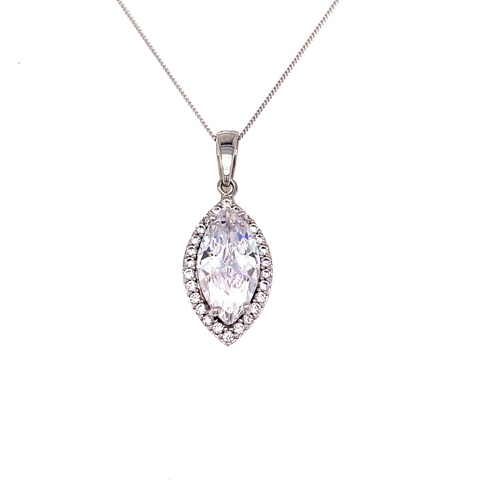 9ct White Gold Cubic Zirconia Marquise Pendant