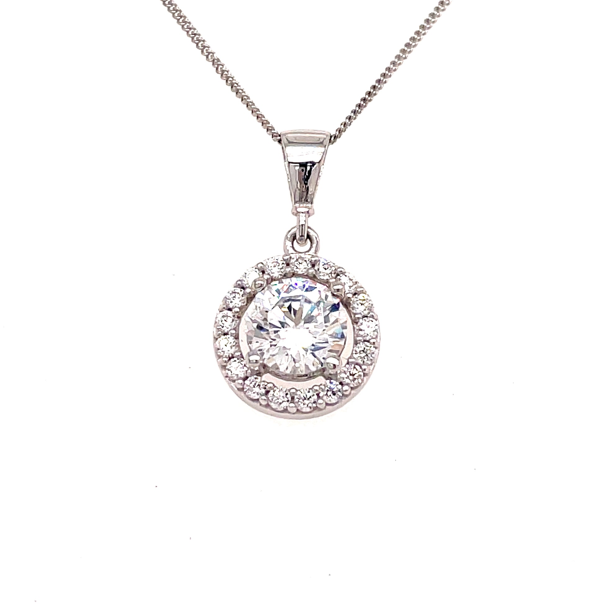 9ct White Gold Round Halo Set Cubic Zirconia Pendant