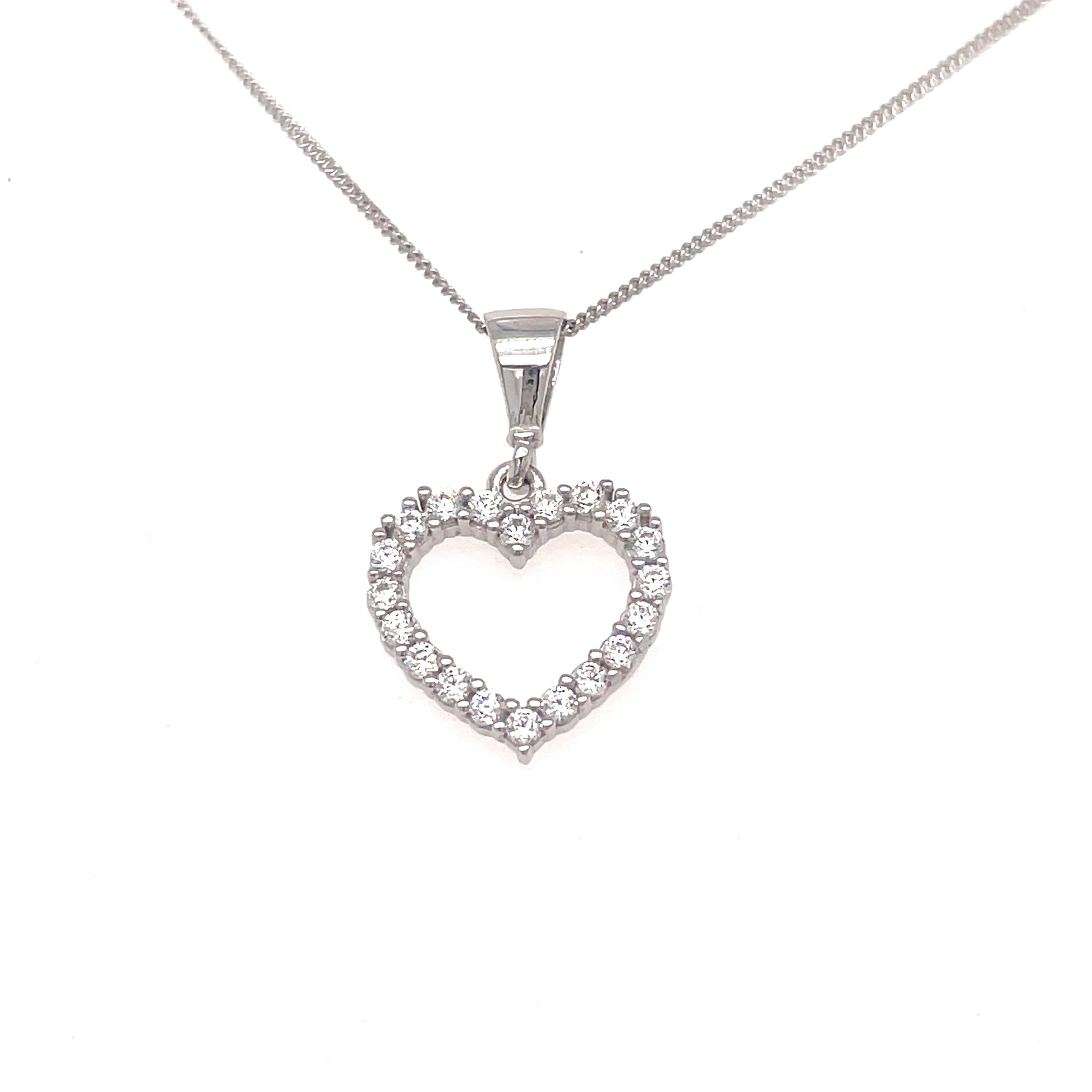 9ct White Gold Open Cubic Zirconia Heart Pendant