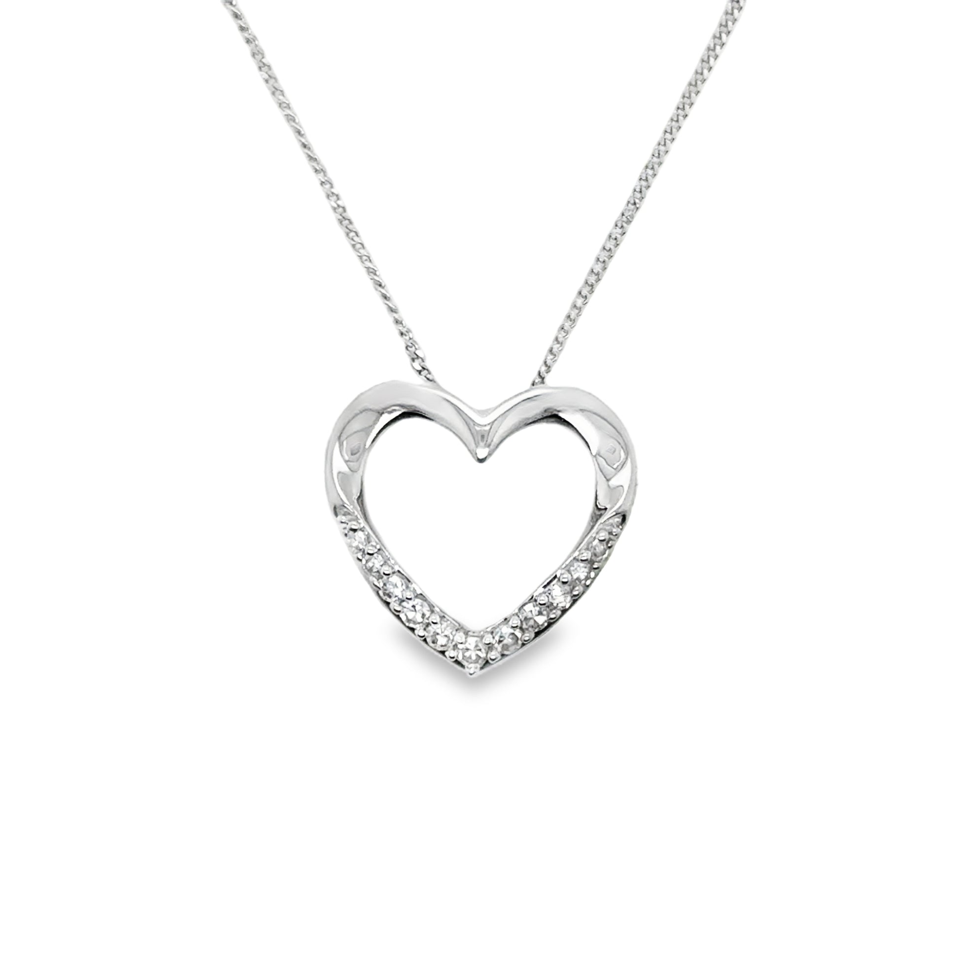 9ct White Gold Open Heart Diamond Necklet .10ct