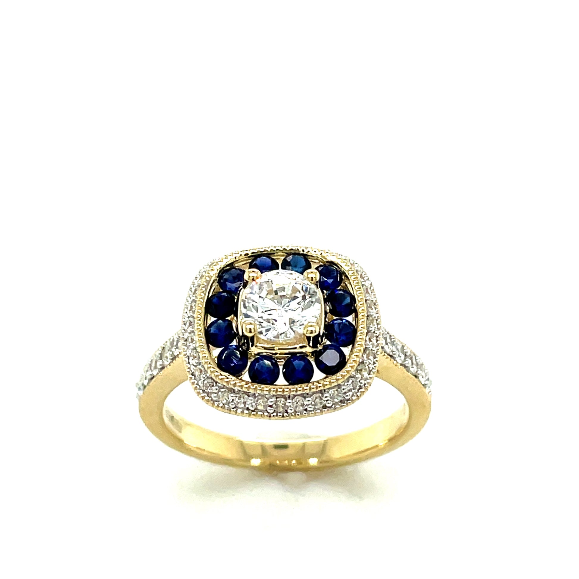 9ct Square Cluster Cubic Zirconia And Synthetic Sapphire Ring