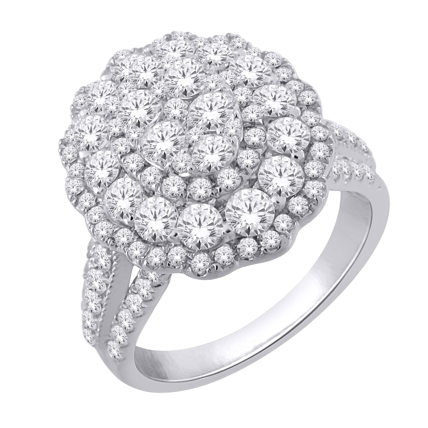 9ct White Gold Fancy Round Cluster 2.00ct Diamond Ring