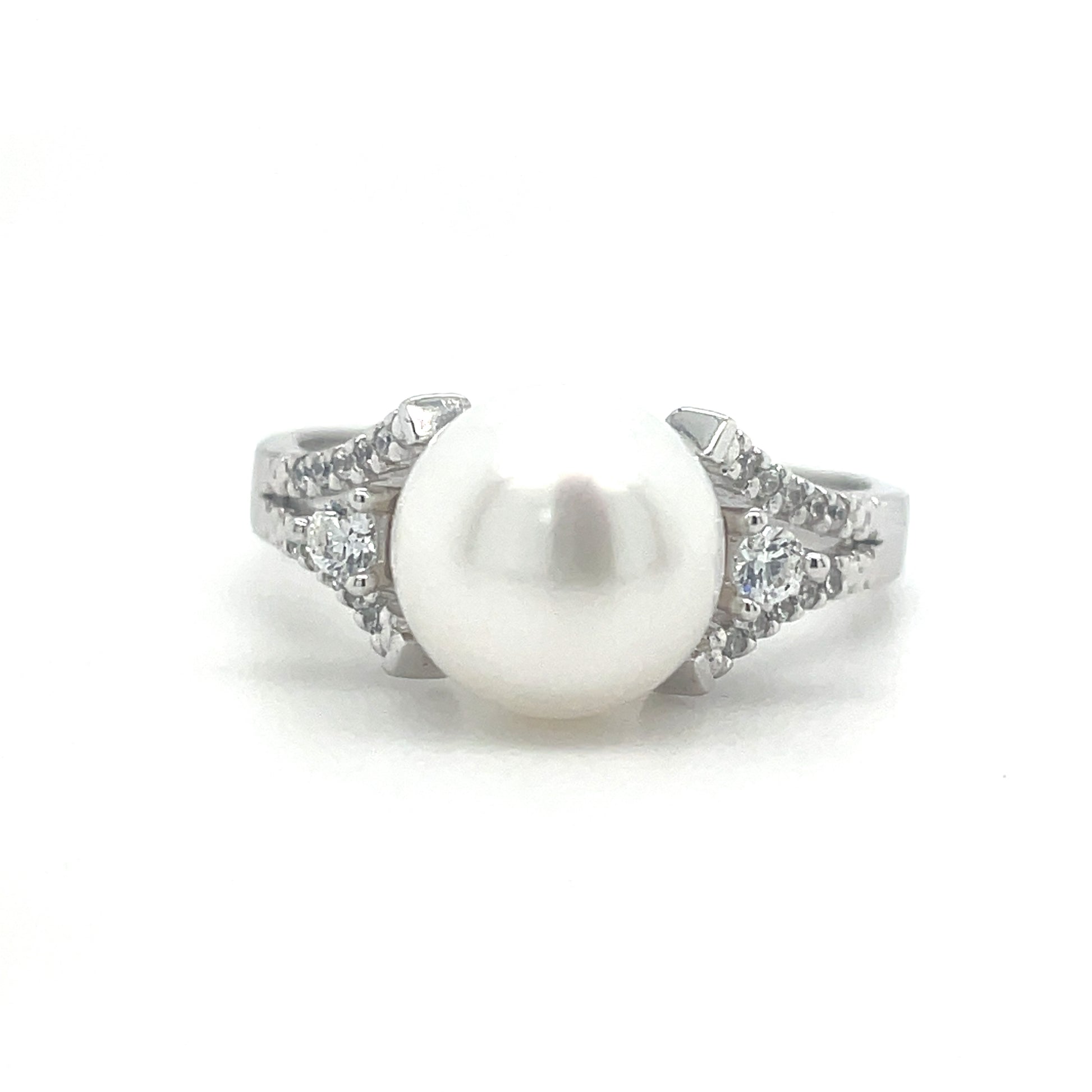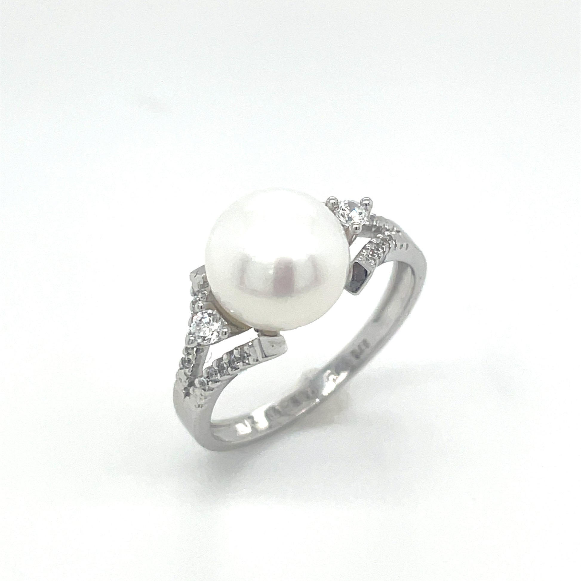 9ct White Gold Pearl And Cubic Zirconia Ring