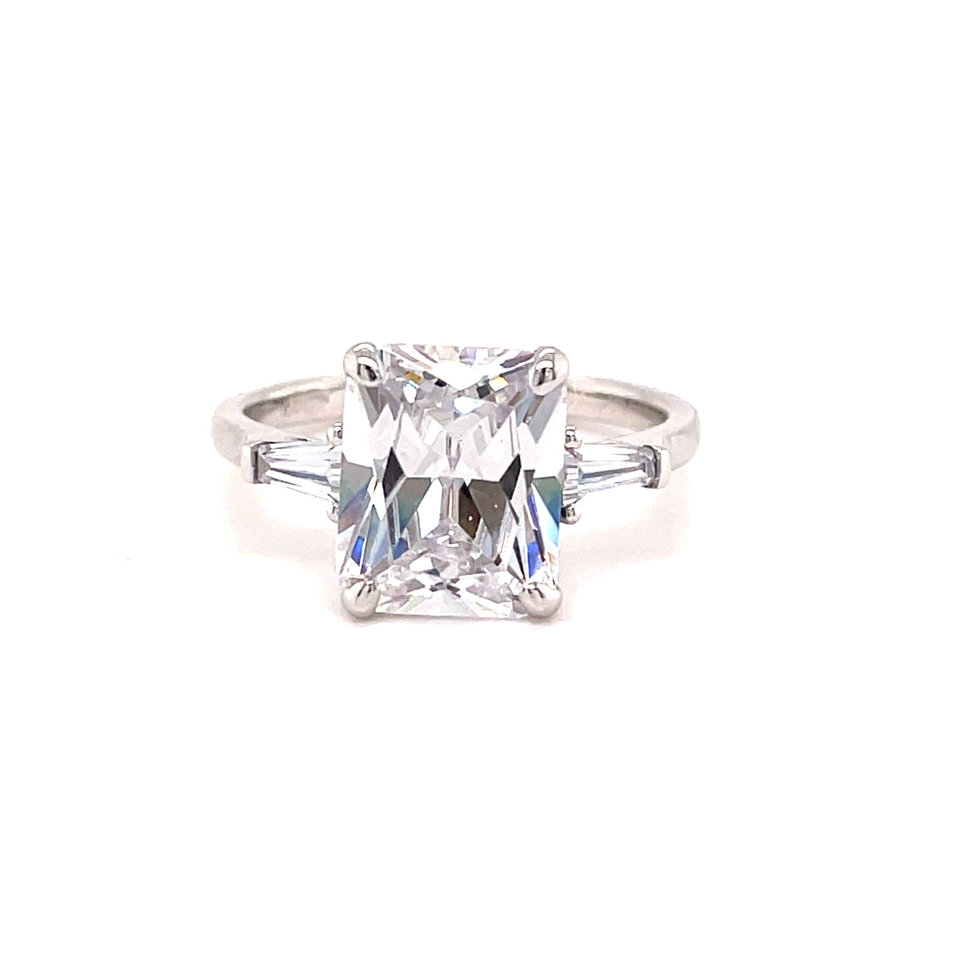 9ct White Gold Square Solitaire Cubic Zirconia Shoulder Ring