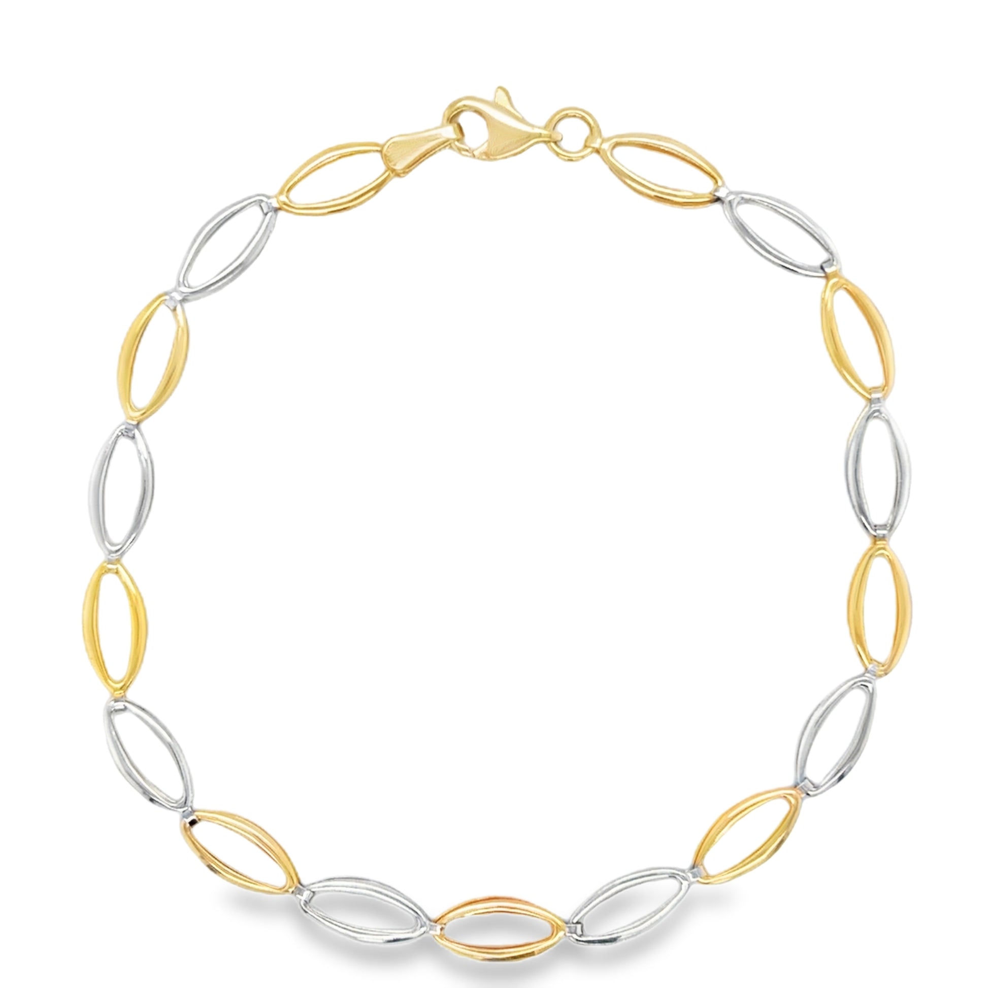 9ct Two Tone Gold Open Oval Link Bracelet