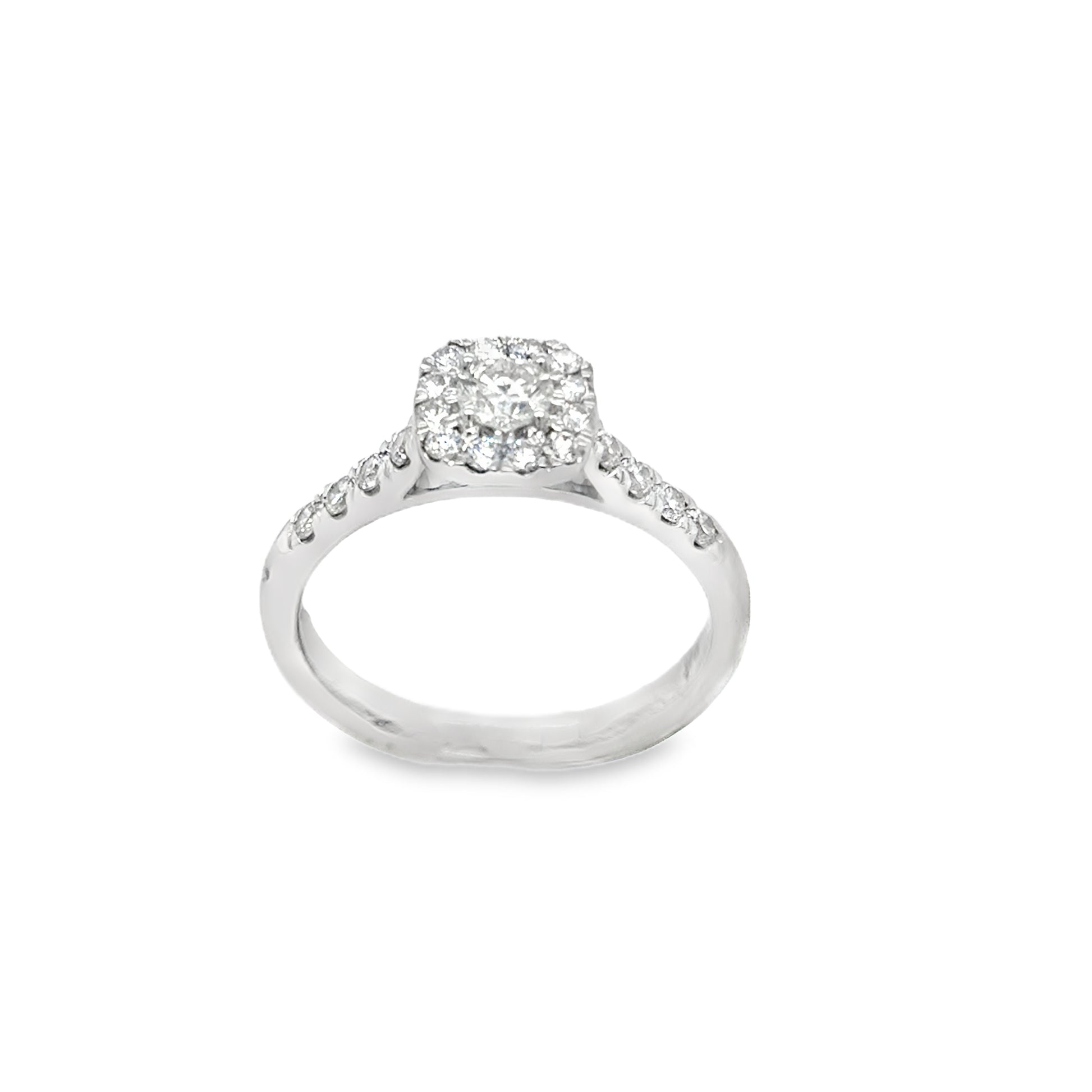 9ct White Gold Square Cluster With Diamond Shoulders .55ct Ring