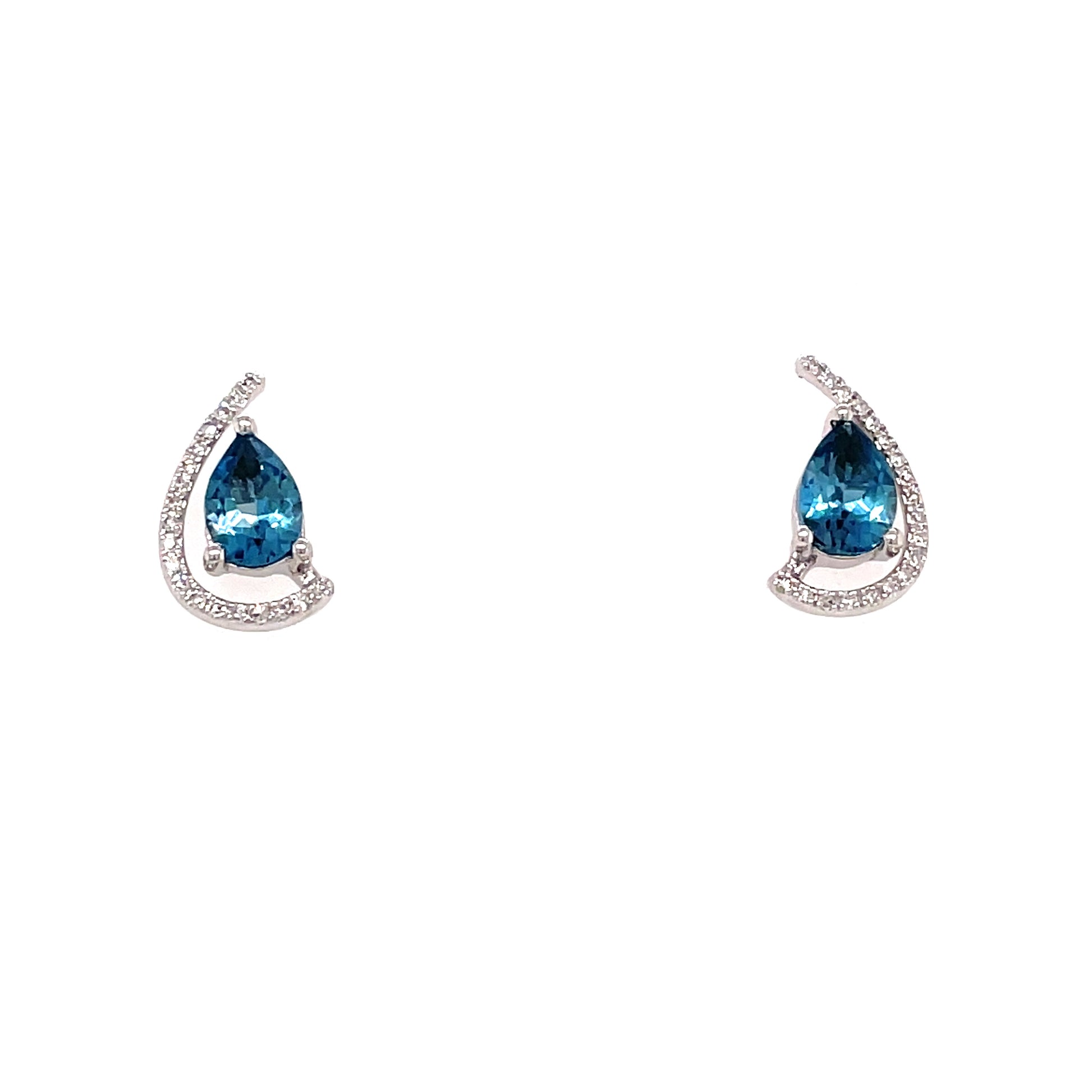 9ct White Gold Open Loop London Blue Topaz/Diamond.08ct Earring