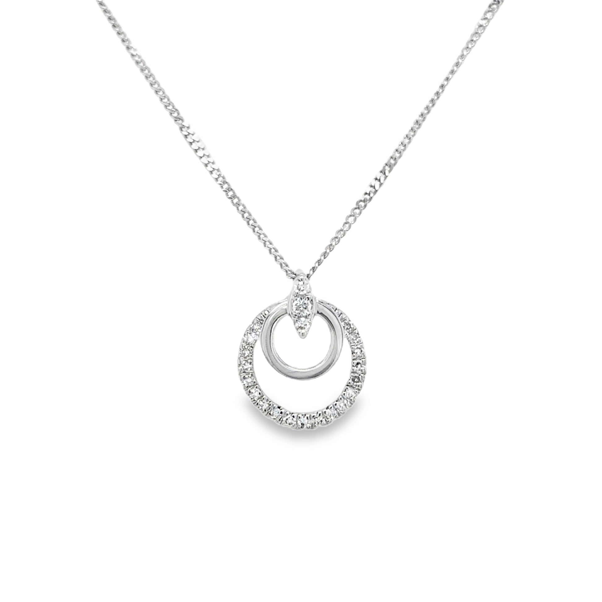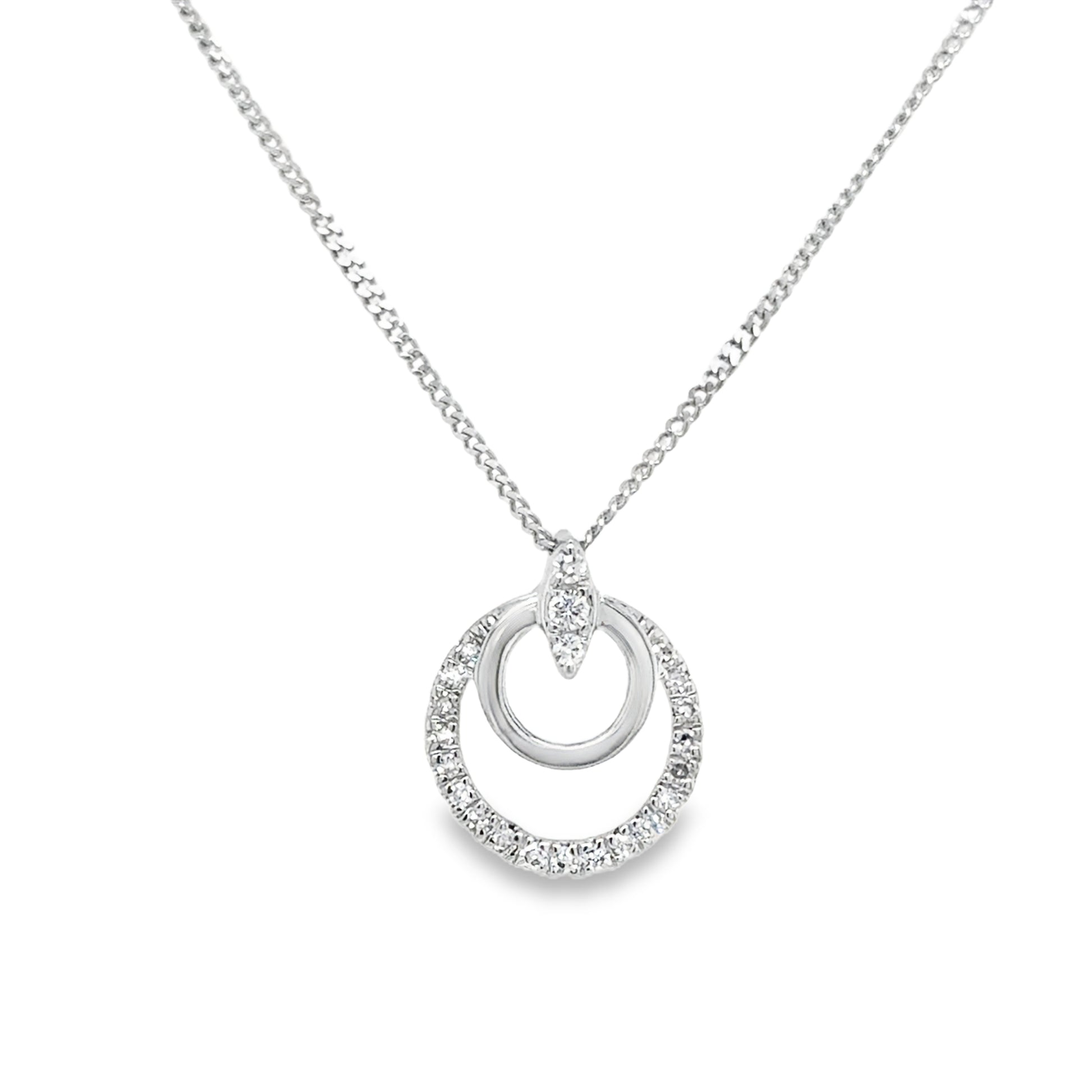 9ct White Gold Double Circle Diamond Necklet .06ct