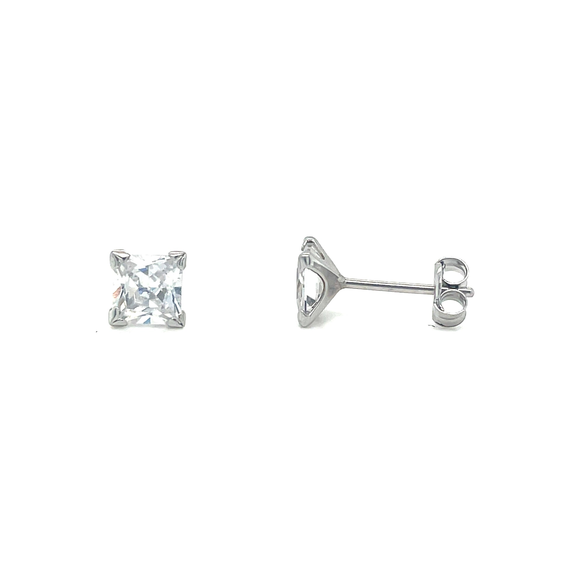 9ct White Gold 5mm Square CZ Stud Earrings