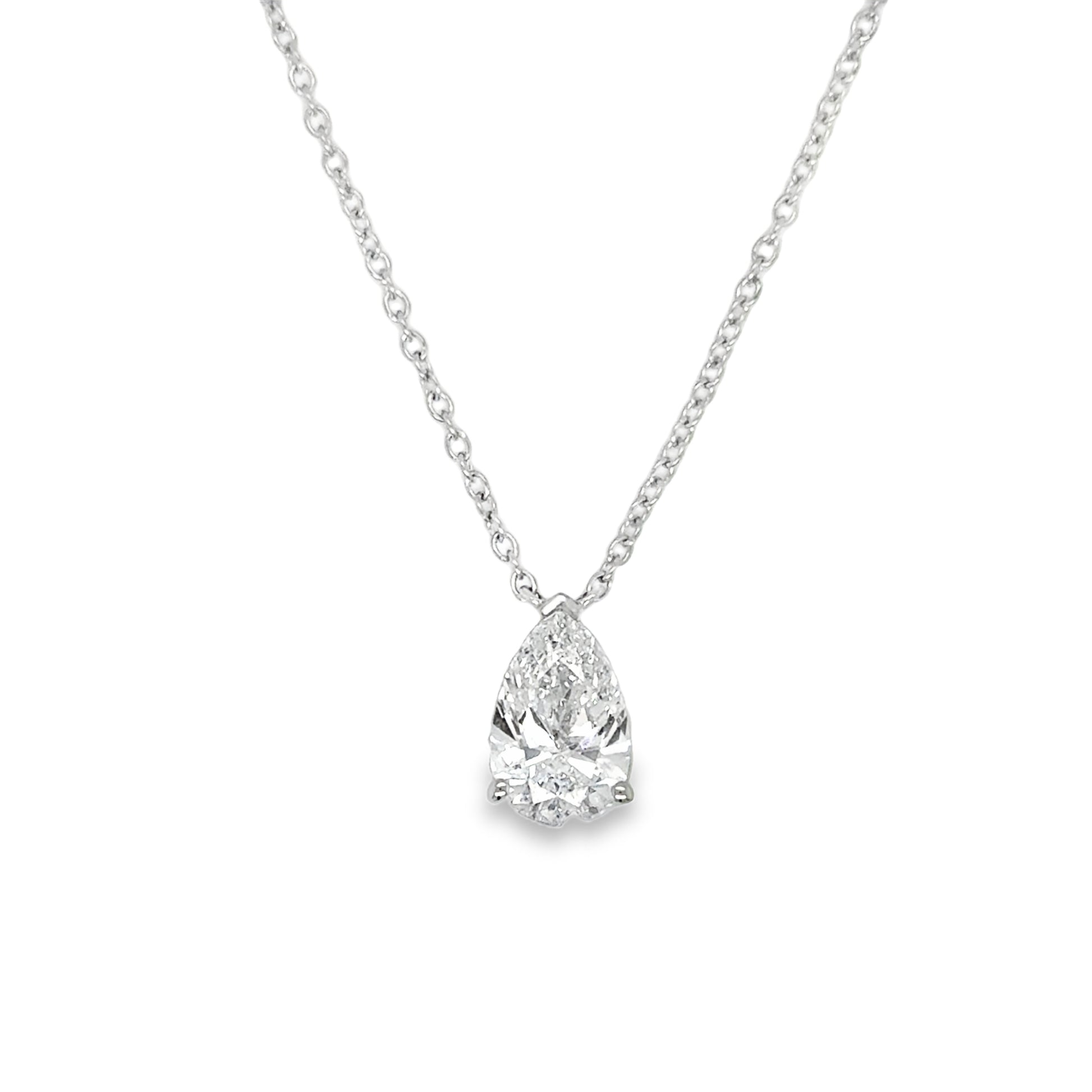 9ct White Gold Pear Cut Solitaire Cultured Diamond Pendant 1.00ct