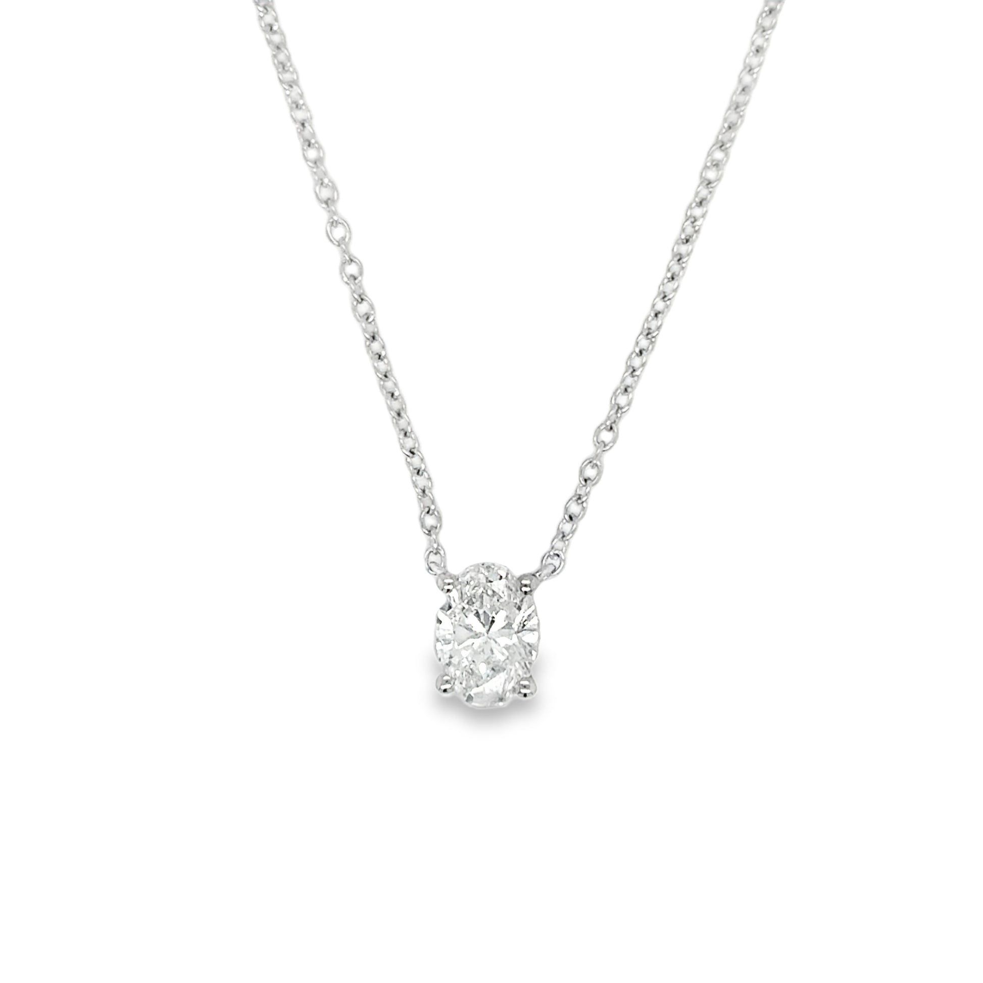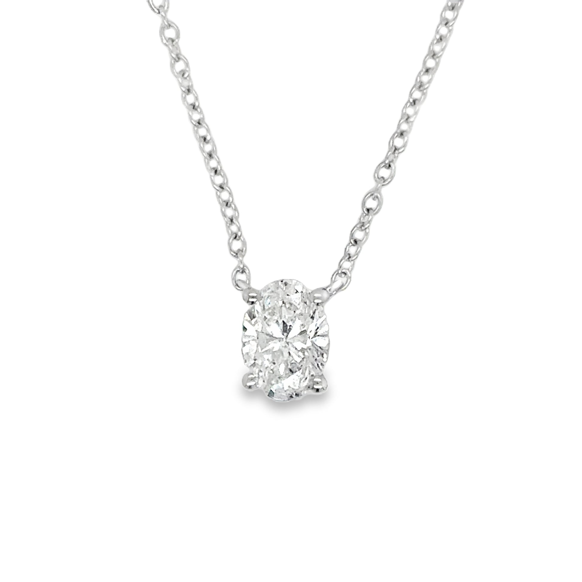 9ct White Gold Oval Cut Solitaire Cultured Diamond Pendant .50ct