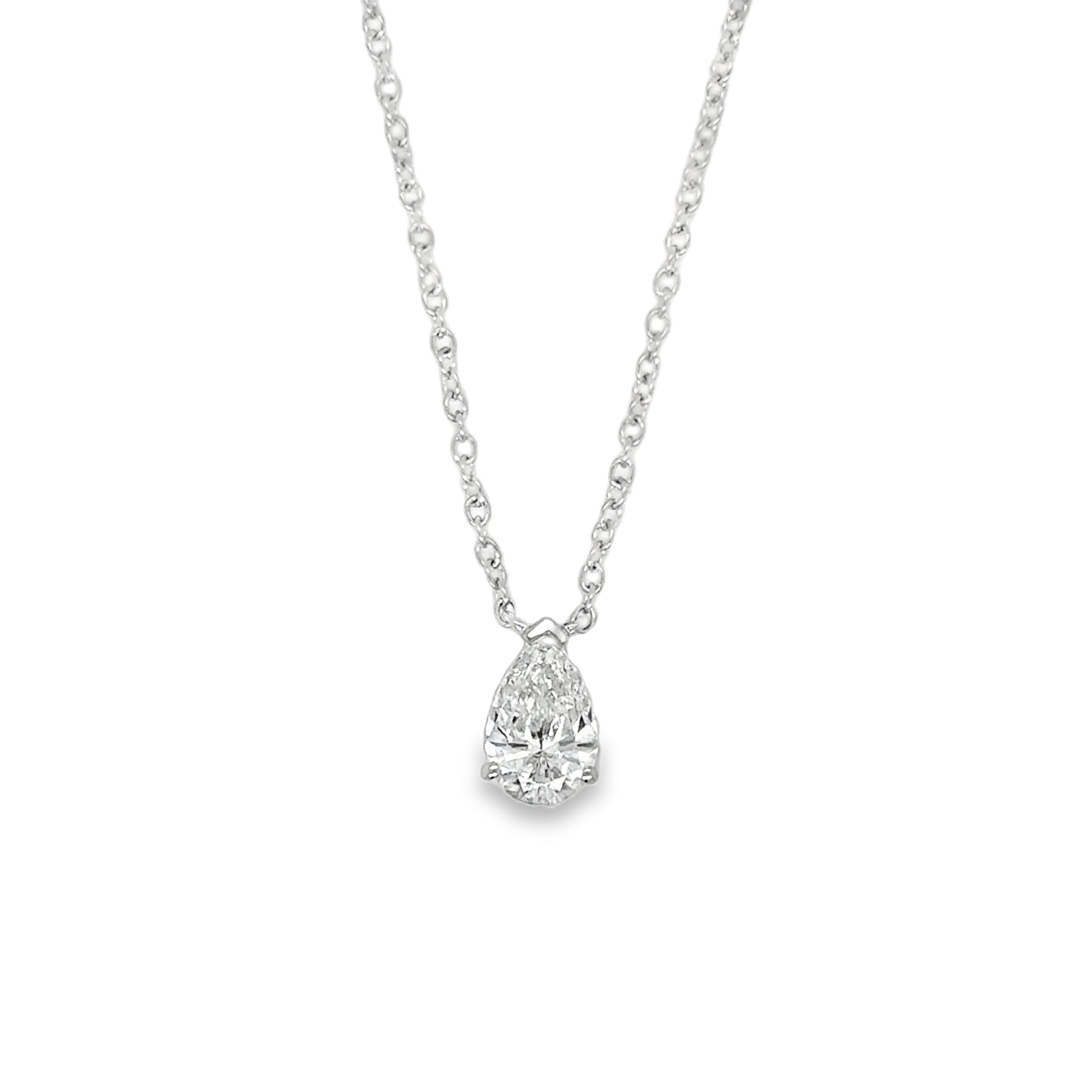9ct White Gold Pear Cut Solitaire Cultured Diamond Pendant .50ct