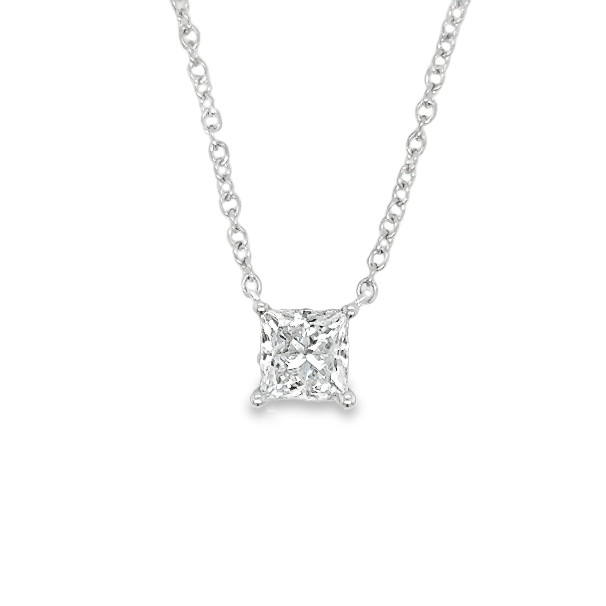 9ct White Gold Princess Cut Solitaire Cultured Diamond Pendant .50ct