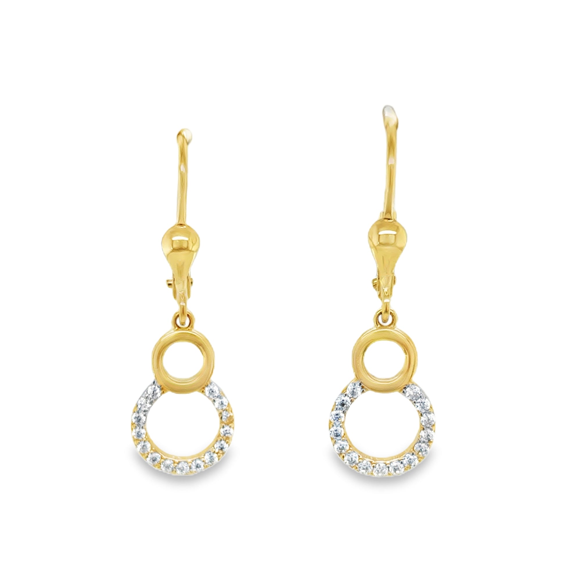 9ct Yellow Gold CZ Open Double Circle German Wire Drop Earrings
