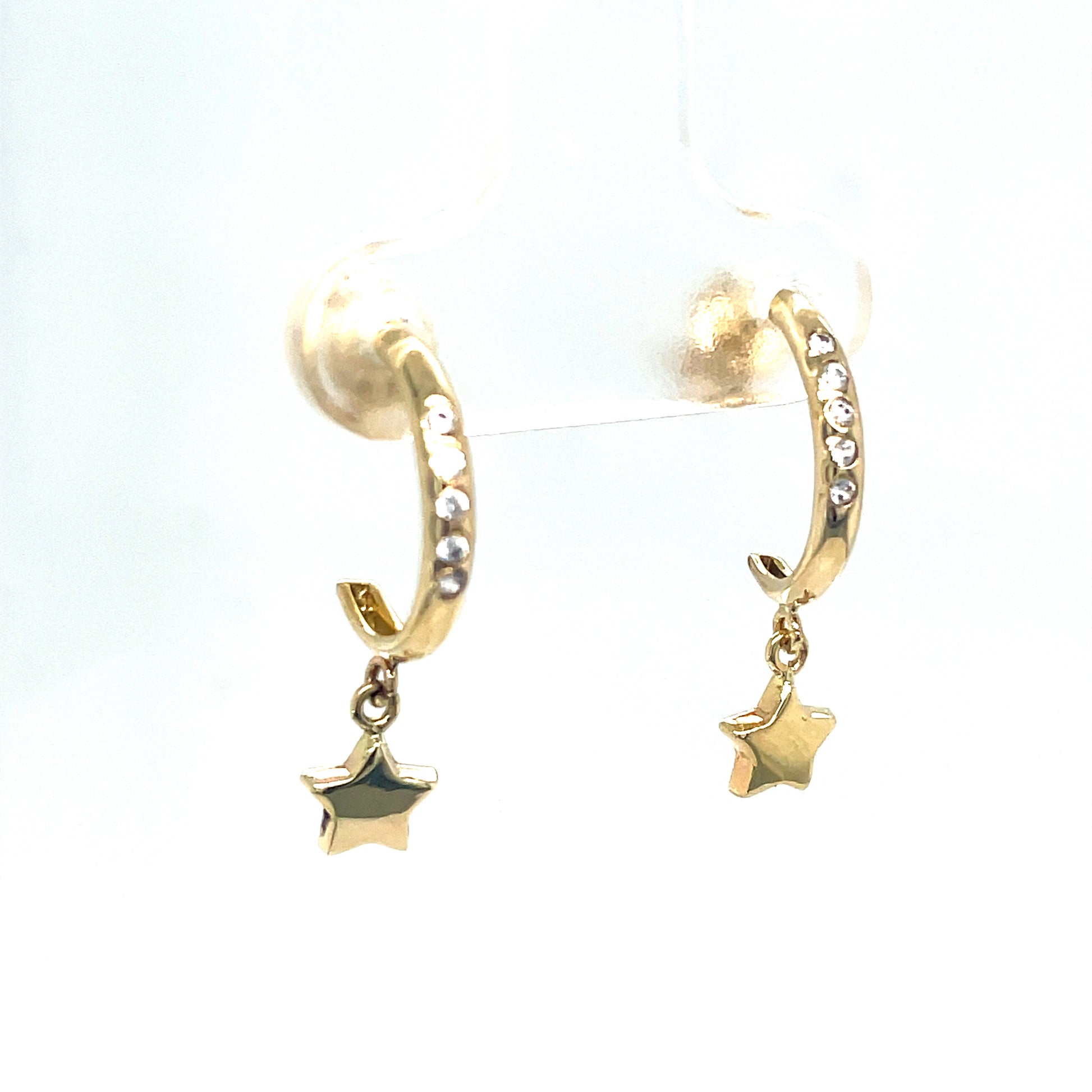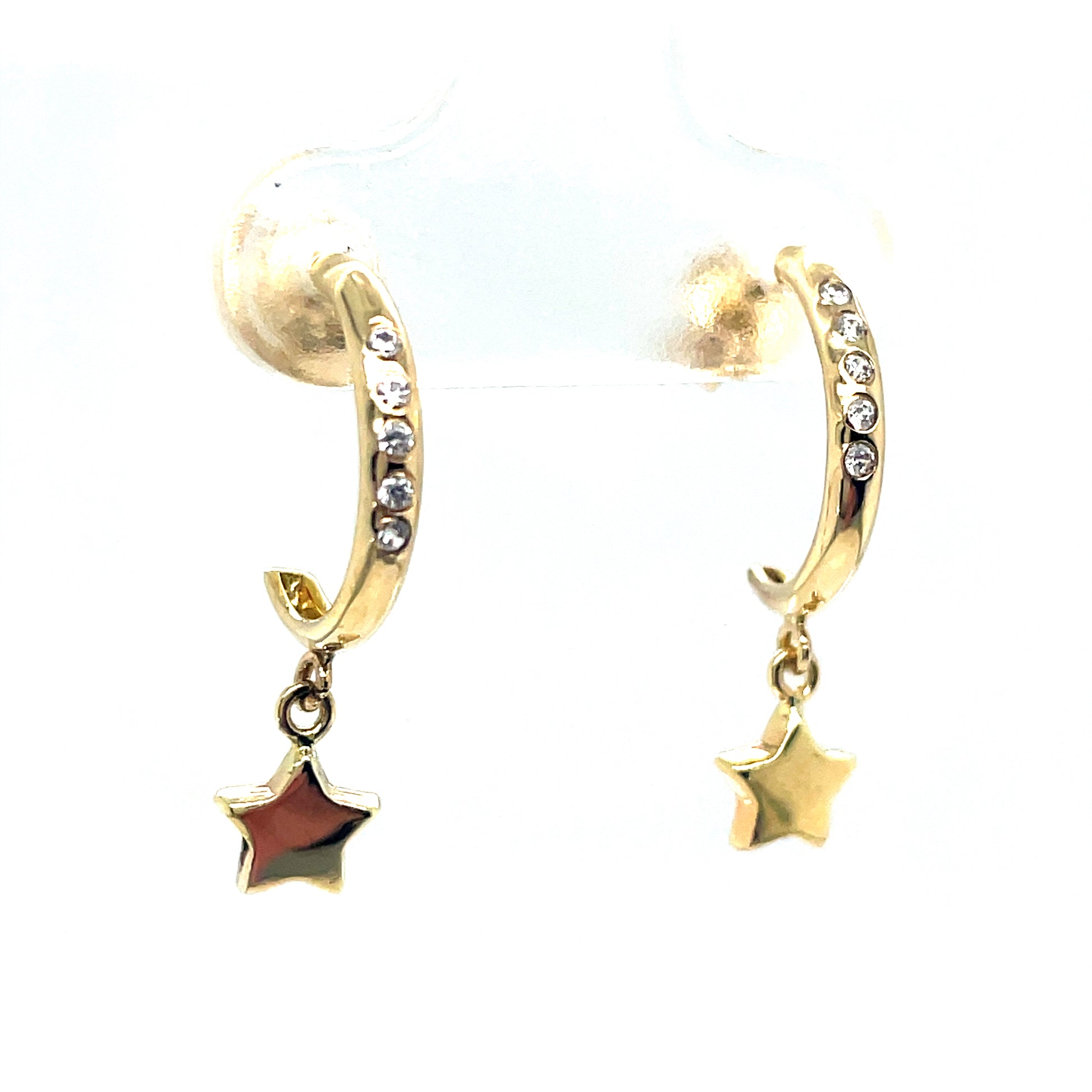 9ct Yellow Gold CZ Set Huggy Earrings with Star Drop