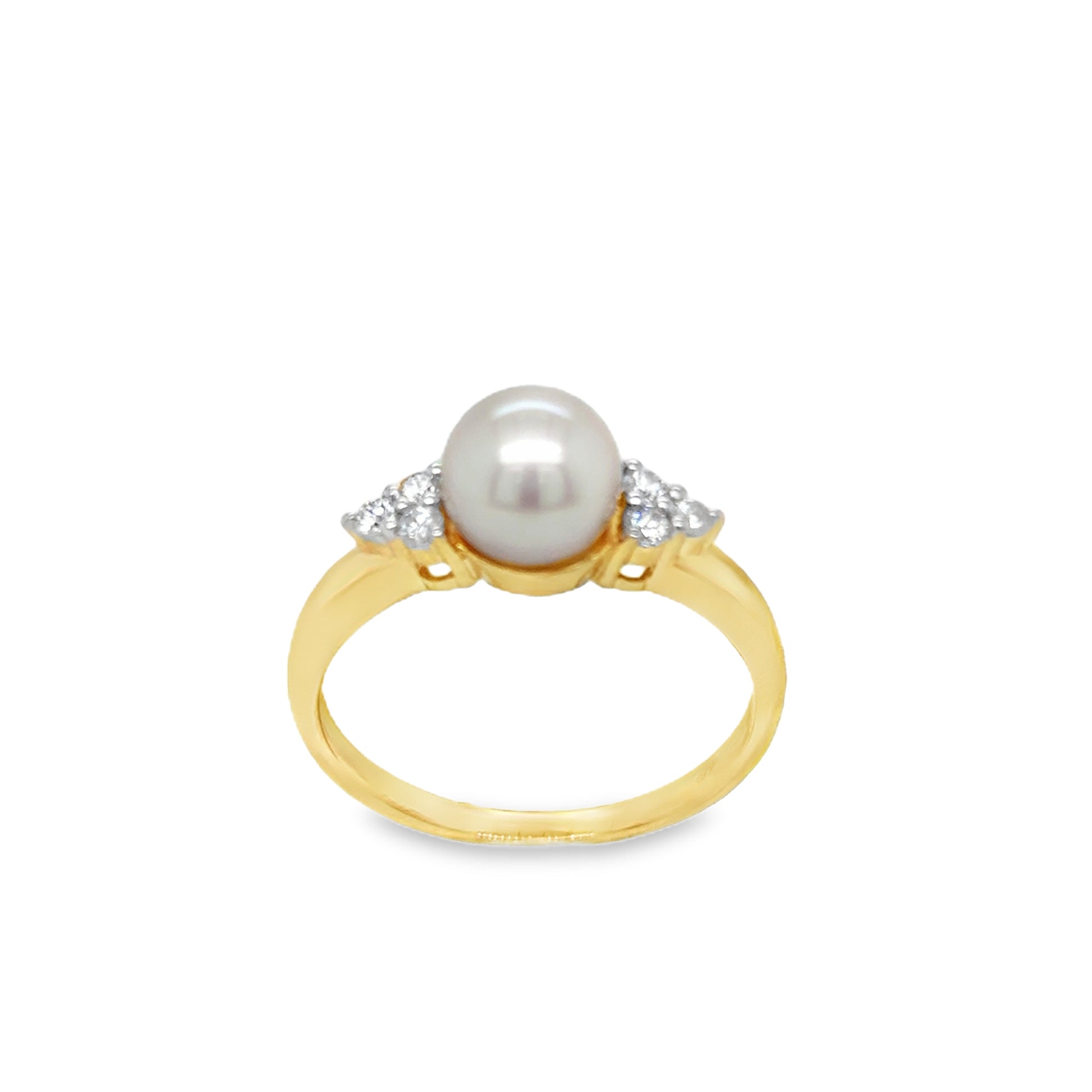 9ct Yellow Gold Freshwater Pearl Ring with Diamond Set Shoulders .16ct