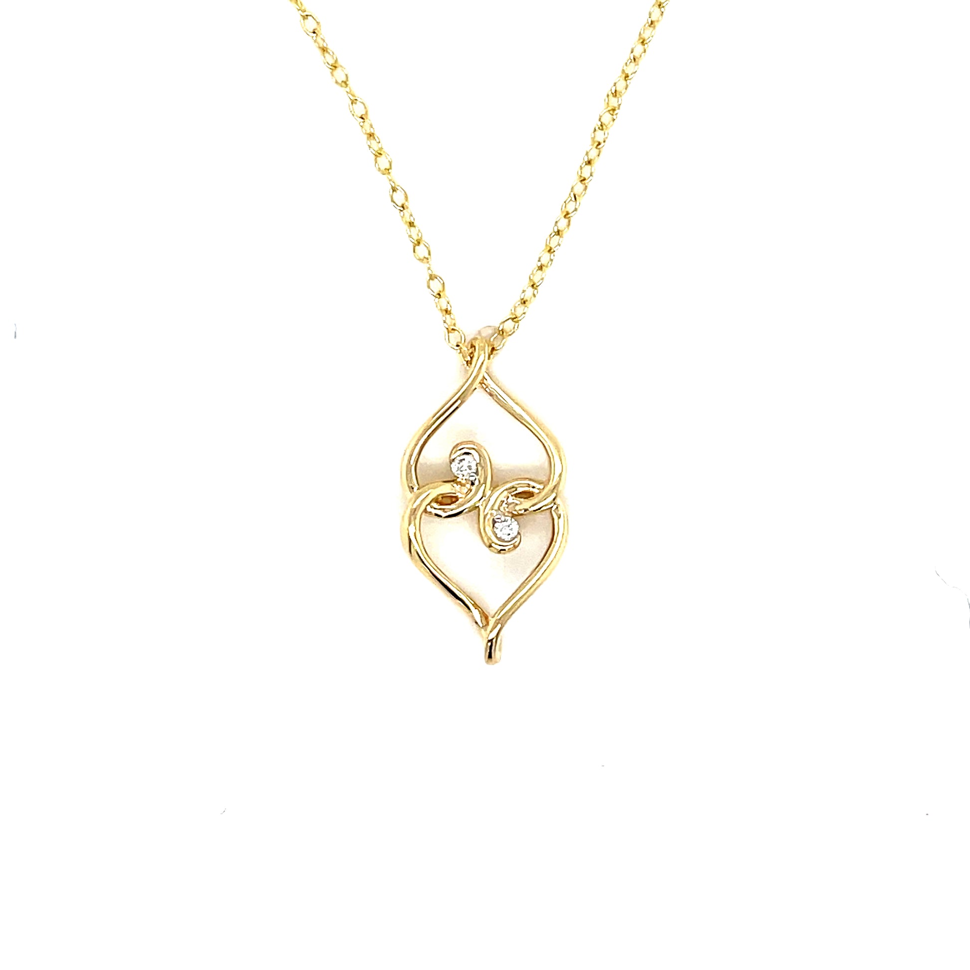 9ct Yellow Gold Open Interlocking Double Heart Diamond Pendant .03ct