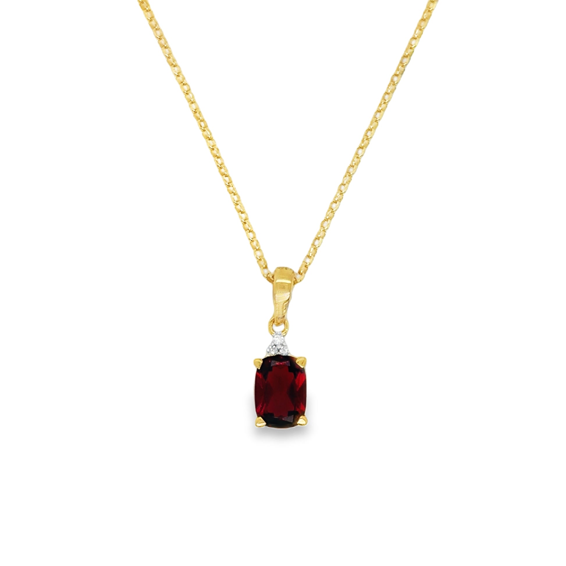 9ct Yellow Gold Oval Cultured Garnet and Diamond Pendant .02ct