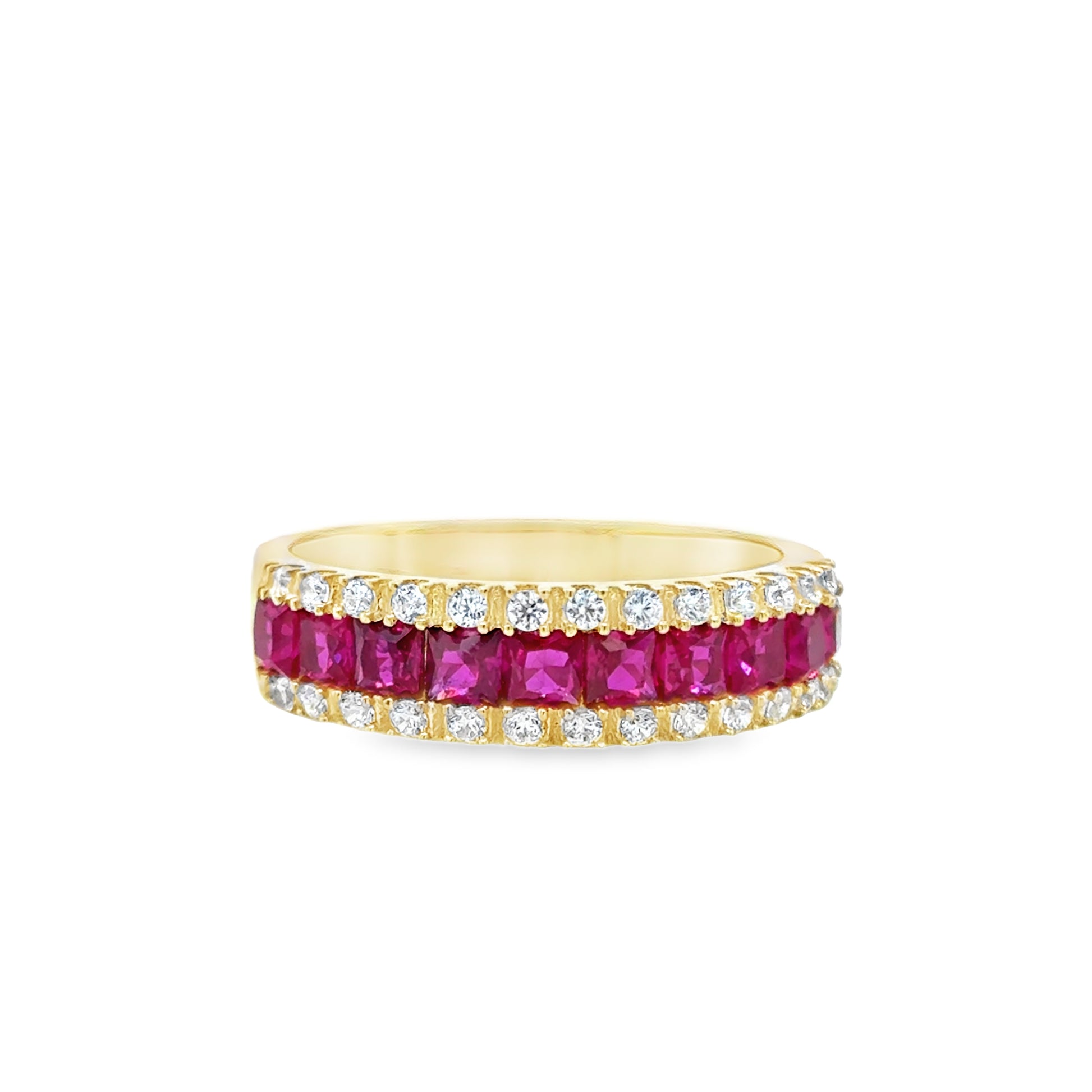9ct Yellow Gold Three Row White and Red CZ Ring