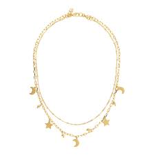 Bronzeallure Gp N/let Dbl Layer Moon/Star