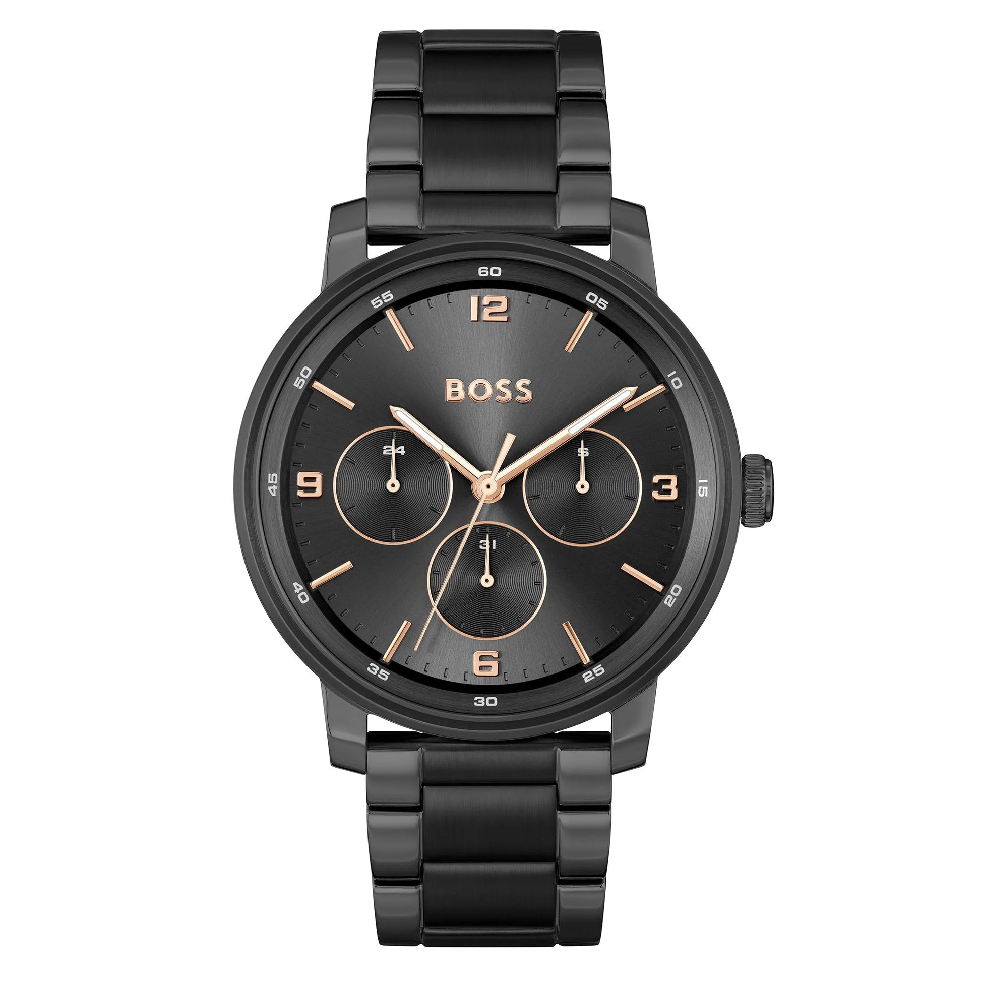 Gents Black Steel Hugo Boss Contender Chronograph Rose Baton Watch