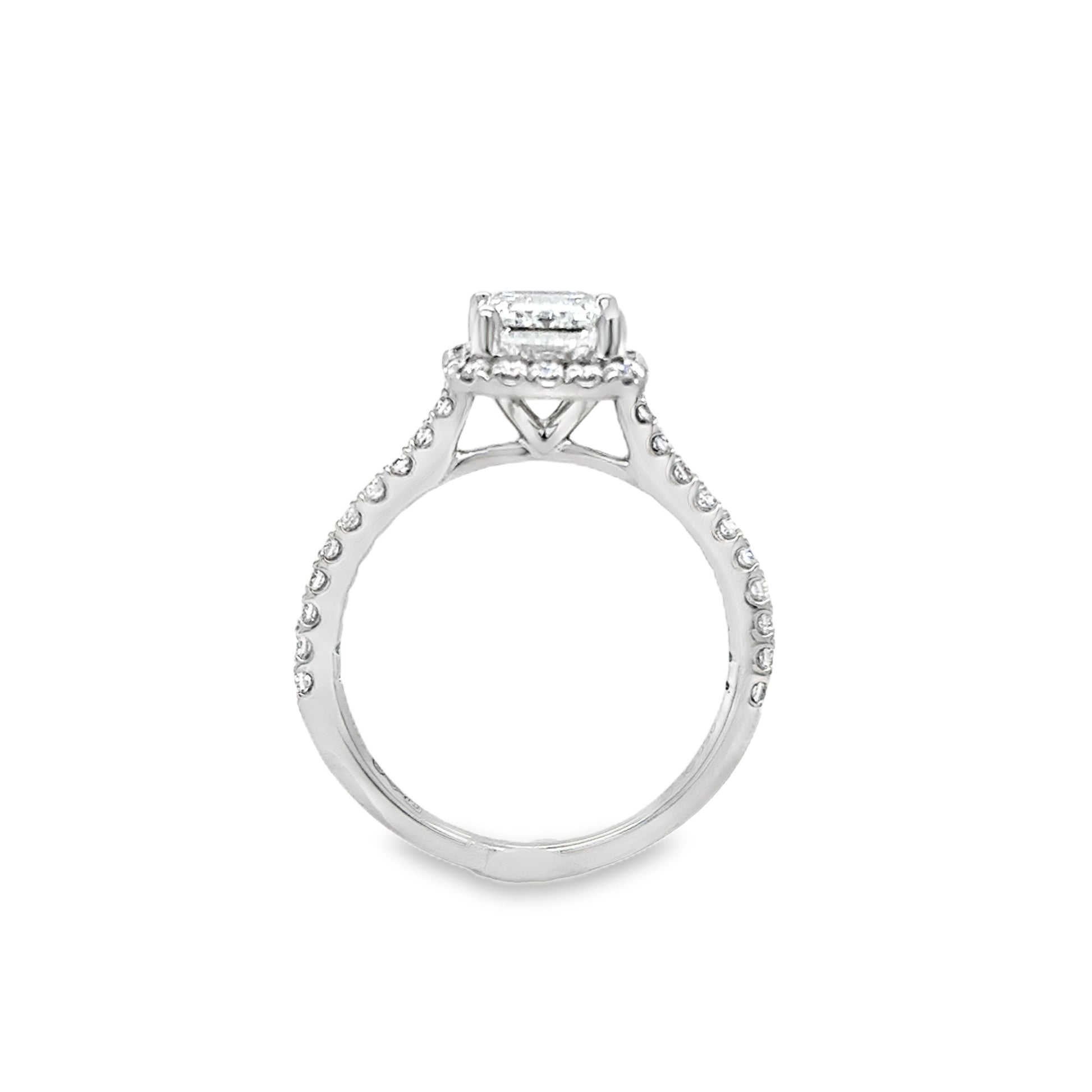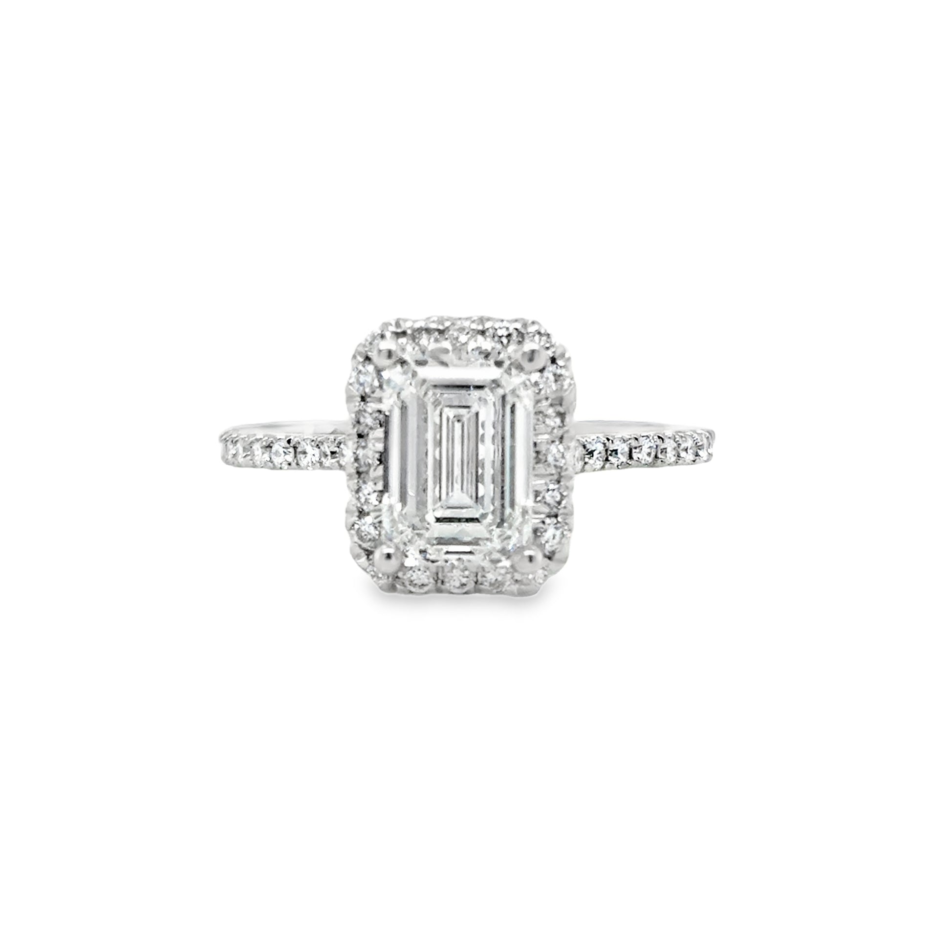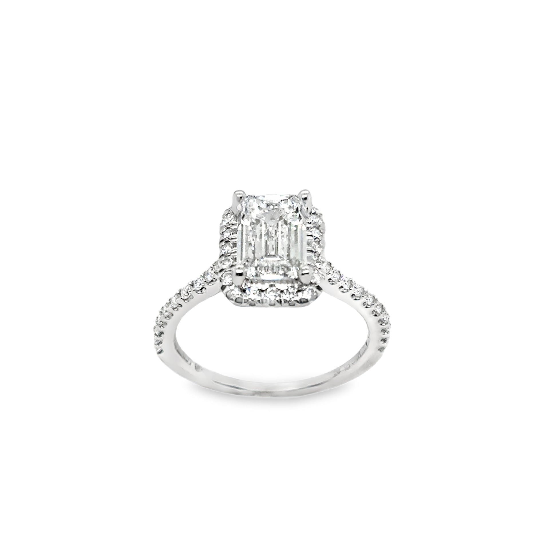 Platinum Emerald Cut Cultured Dimaond Ring With Halo & Shouders 2.42ct