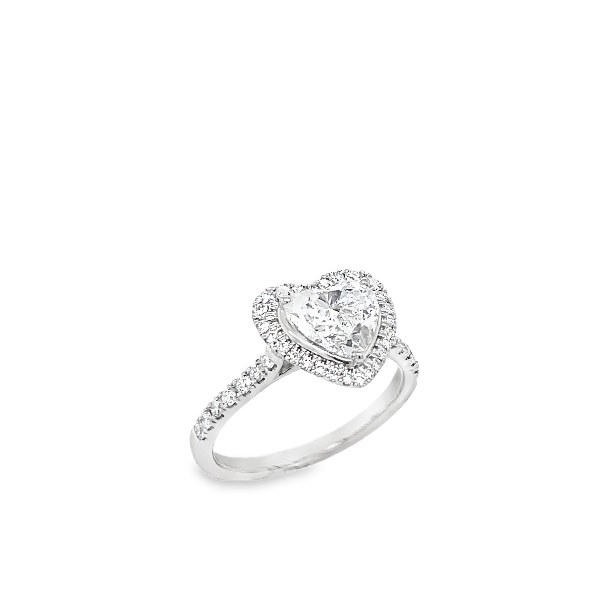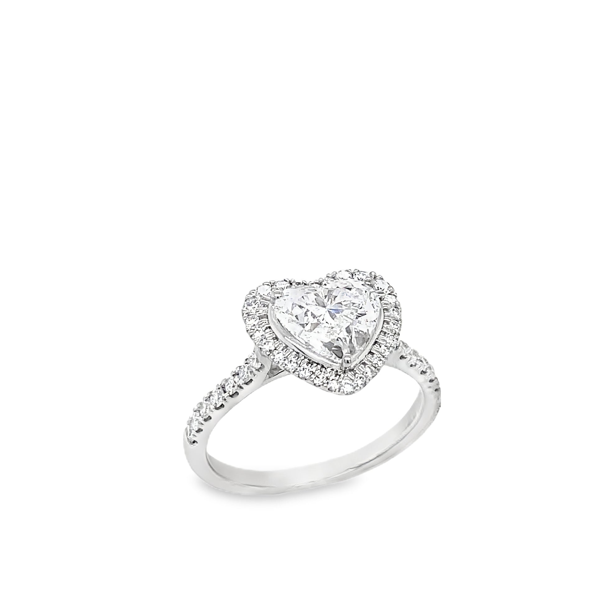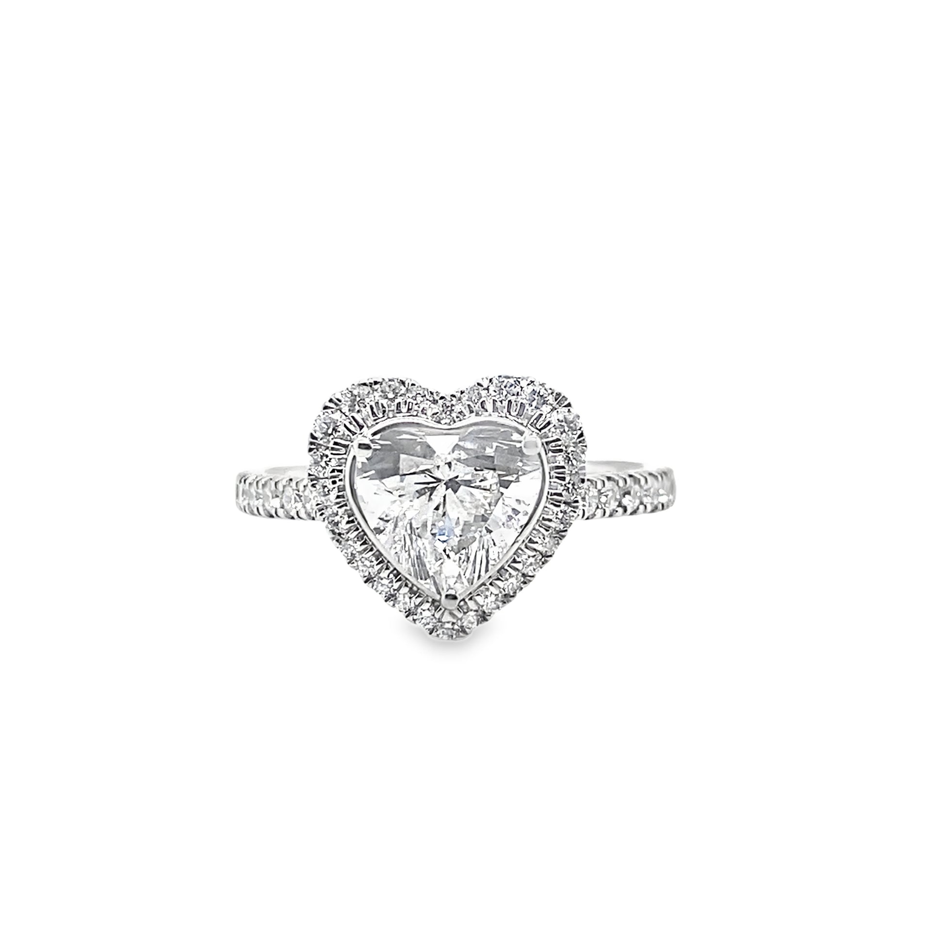 Platinum Heart Solitaire Cultured Diamond Ring with Cultured Diamond Set Halo and Shoulders 2.00ct