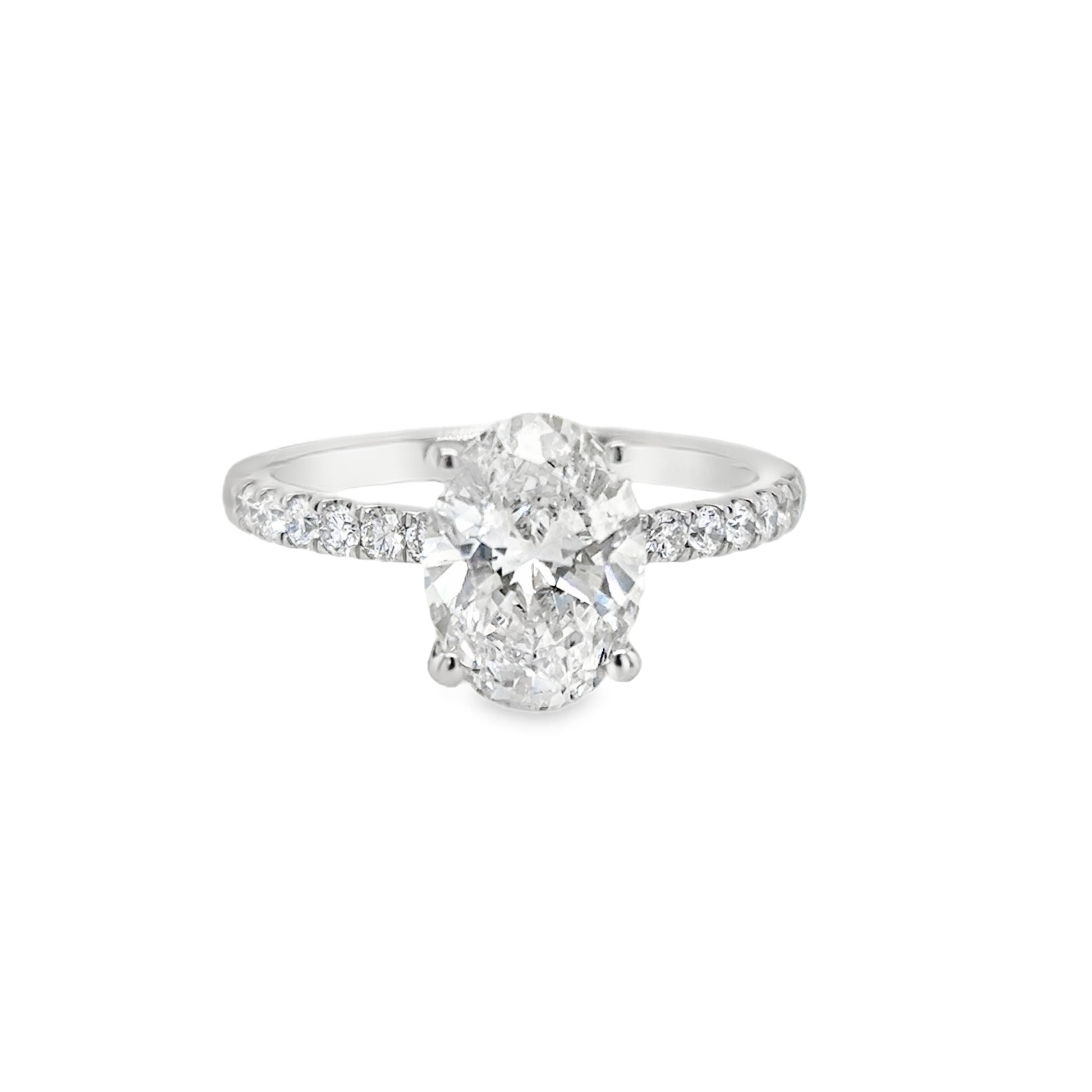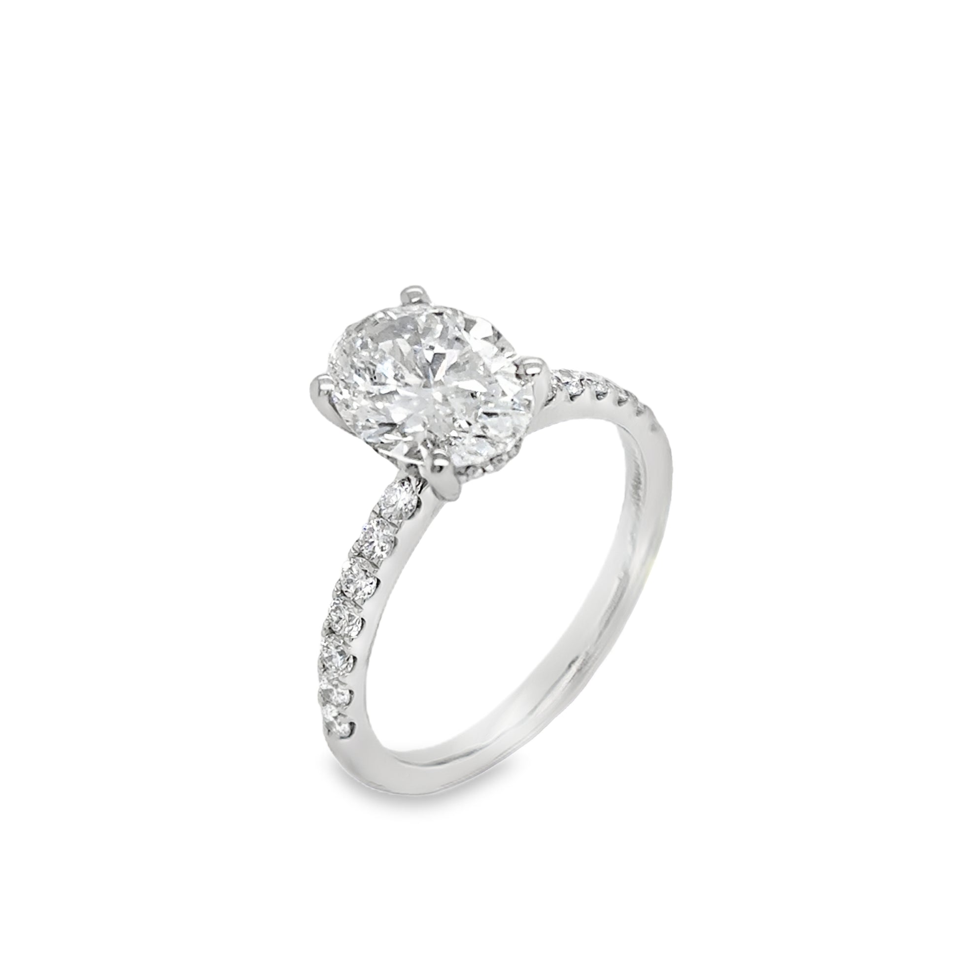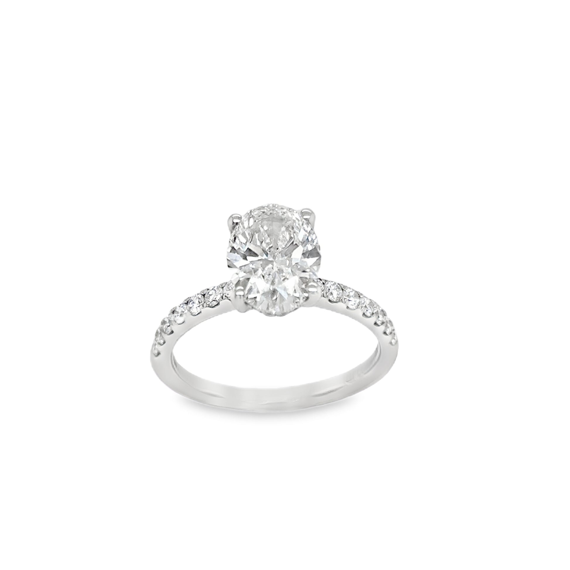 Platinum Oval Solitaire Cultured Diamond Ring with Cultured Diamond Set Shoulders and Gallery 2.49ct
