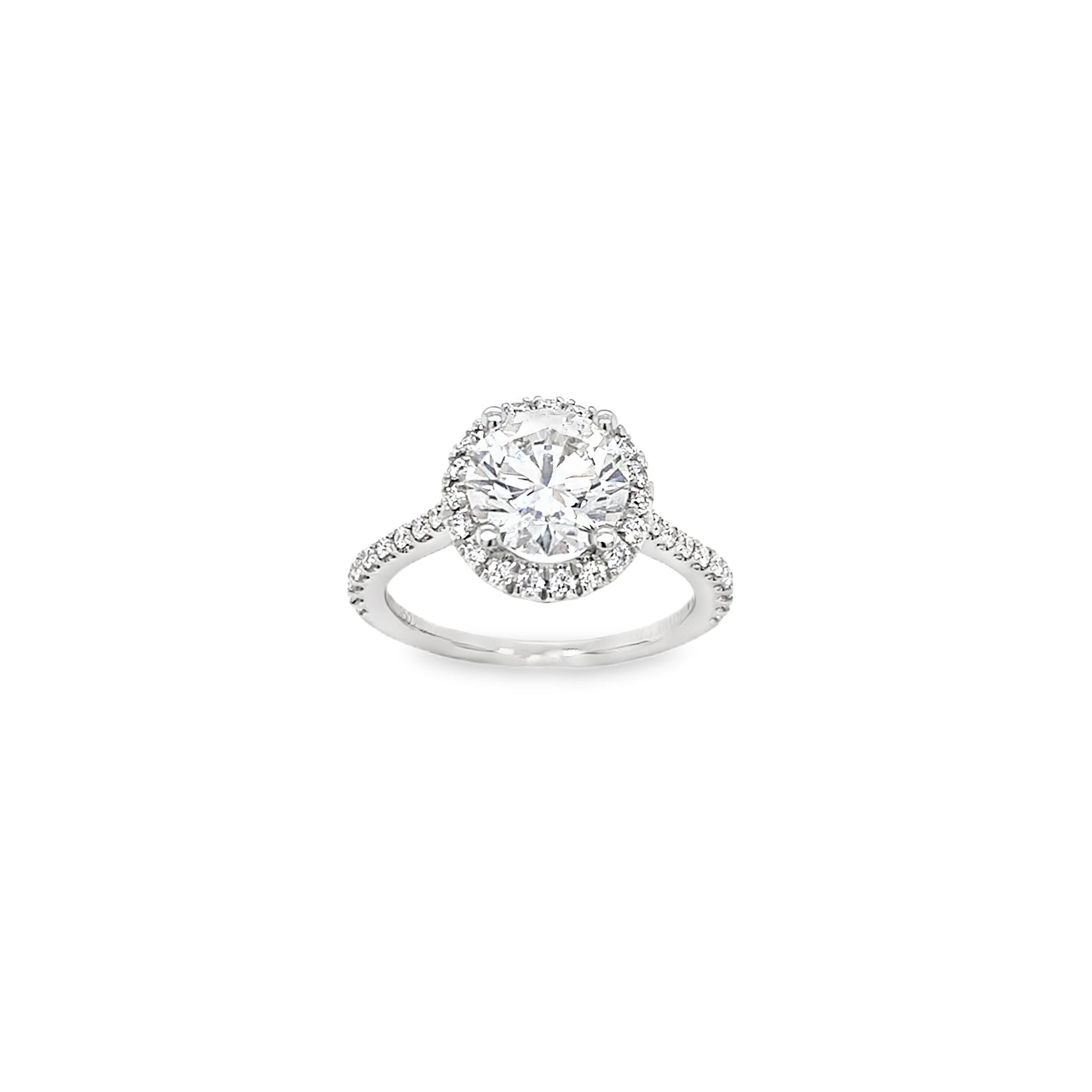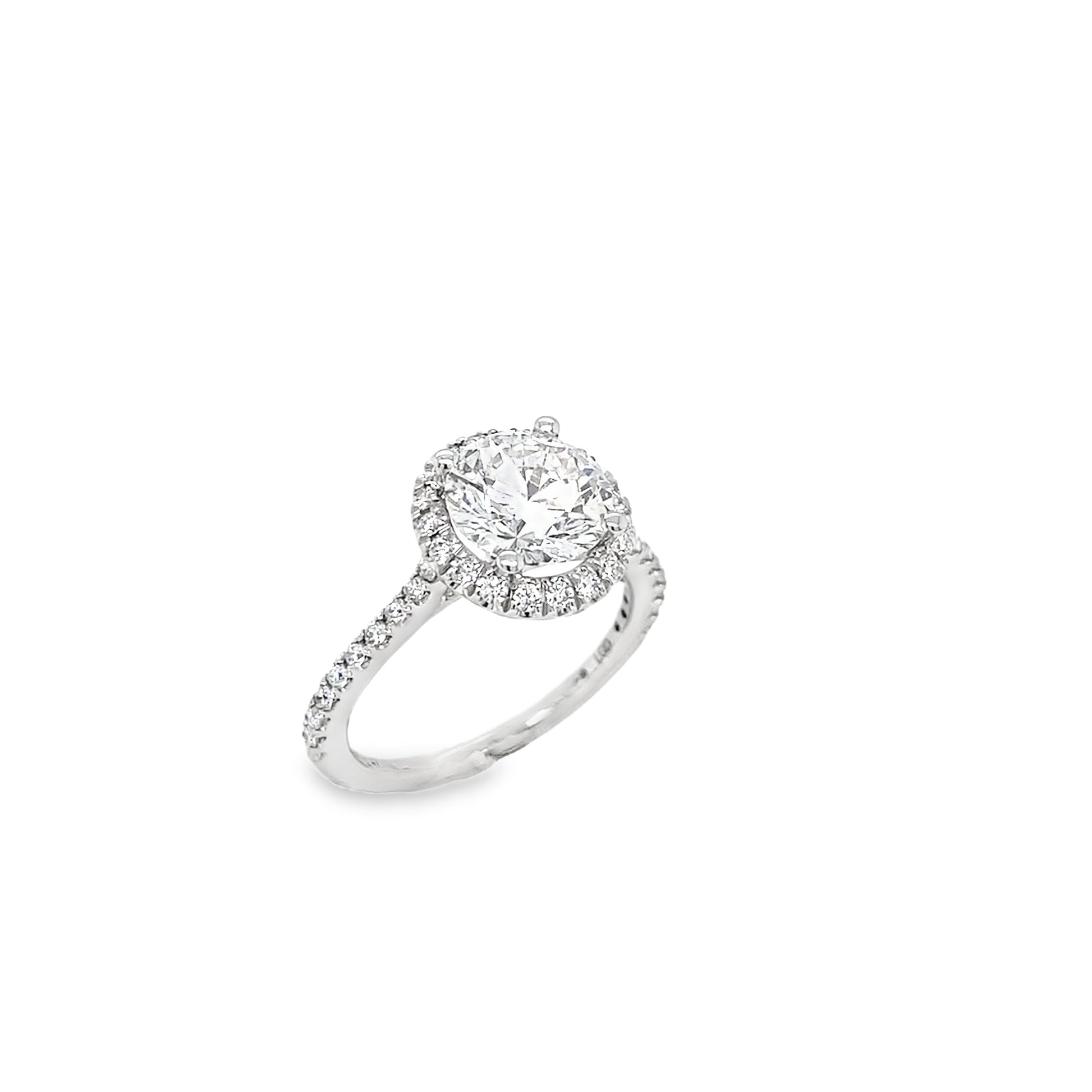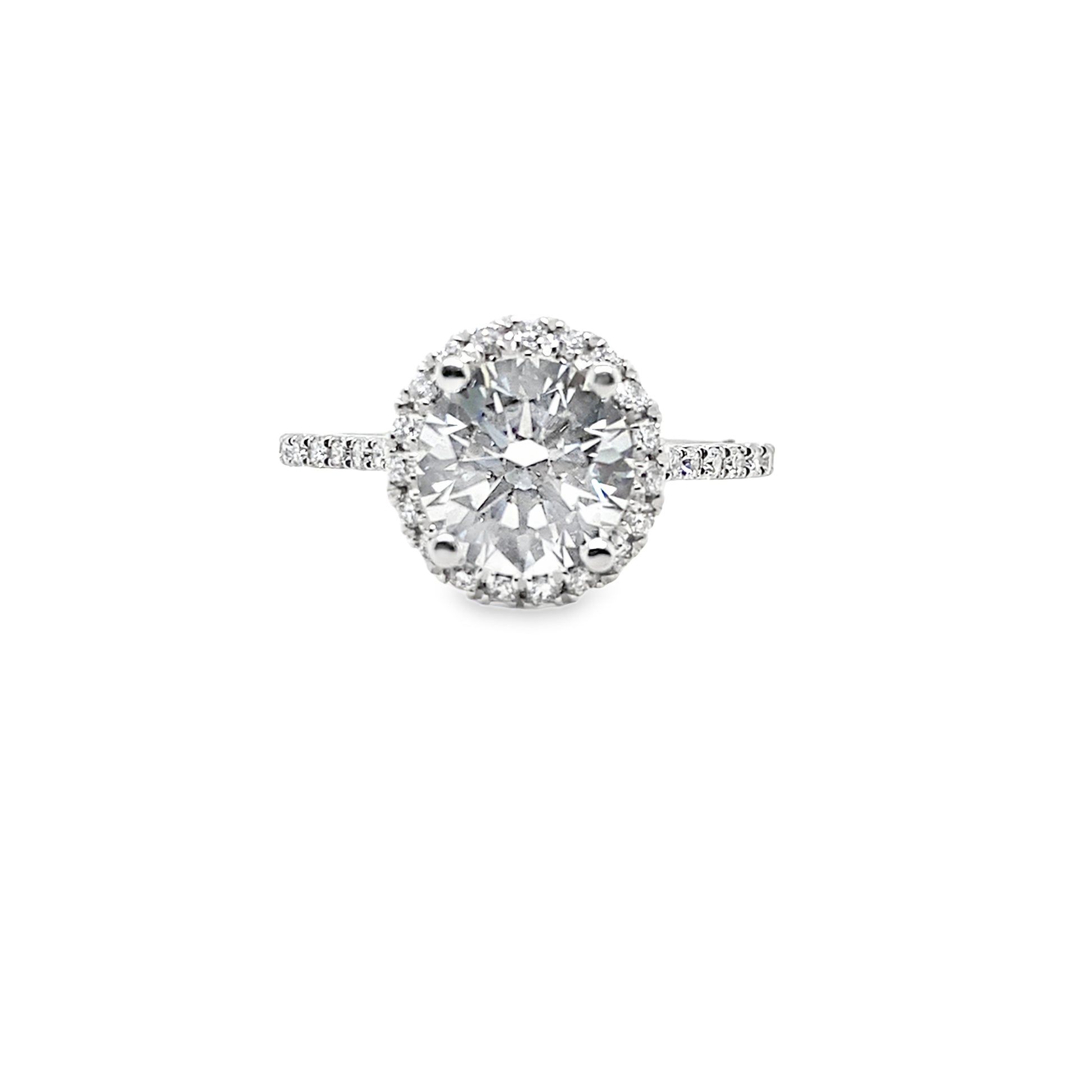 Platinum Round Brilliant Halo Cultured Diamond Ring With Stone Set Shoulders 2.44ct