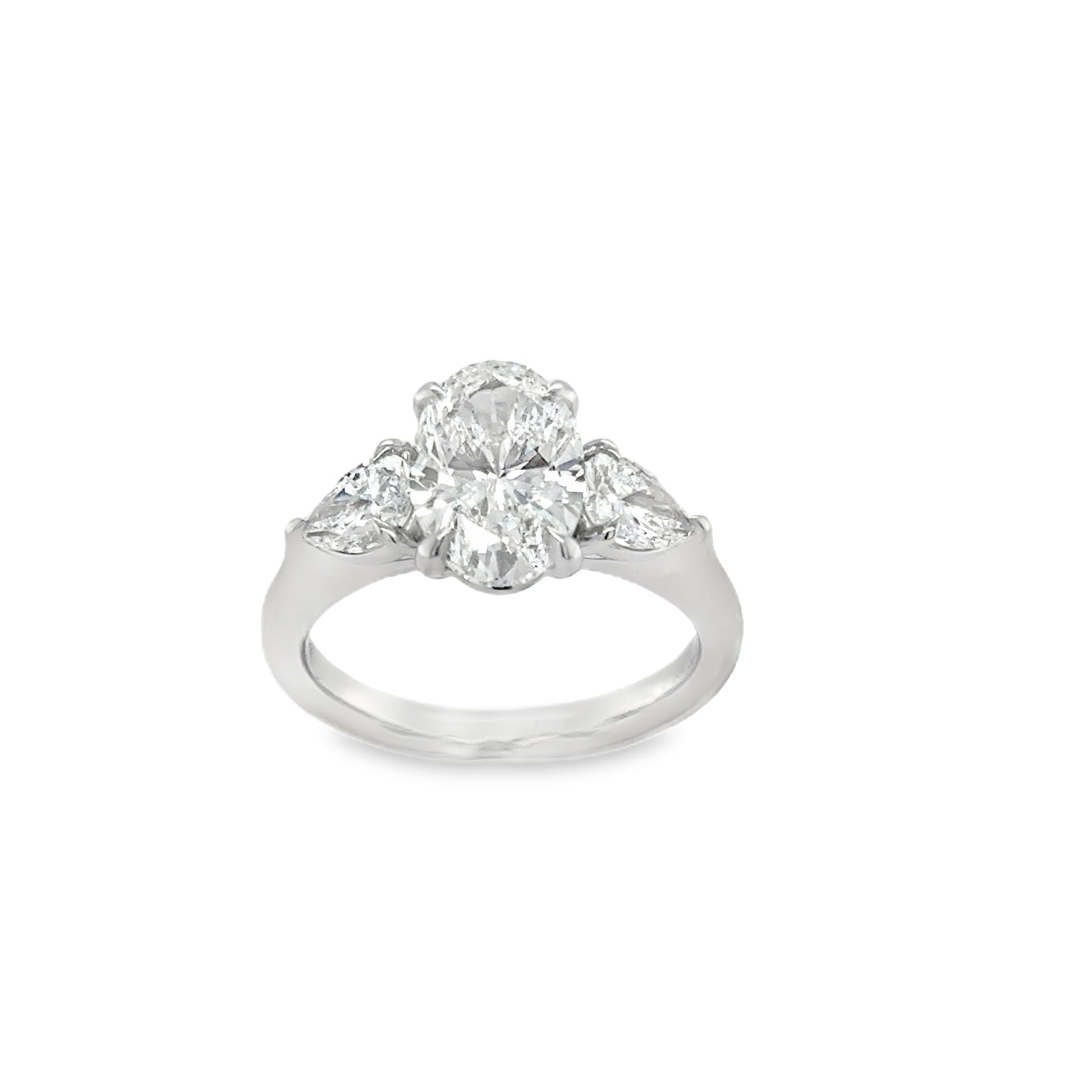 Platinum 3 Stone Cultured Diamond Ring Oval Cut Centre With Pear Shoulders 2.74ct