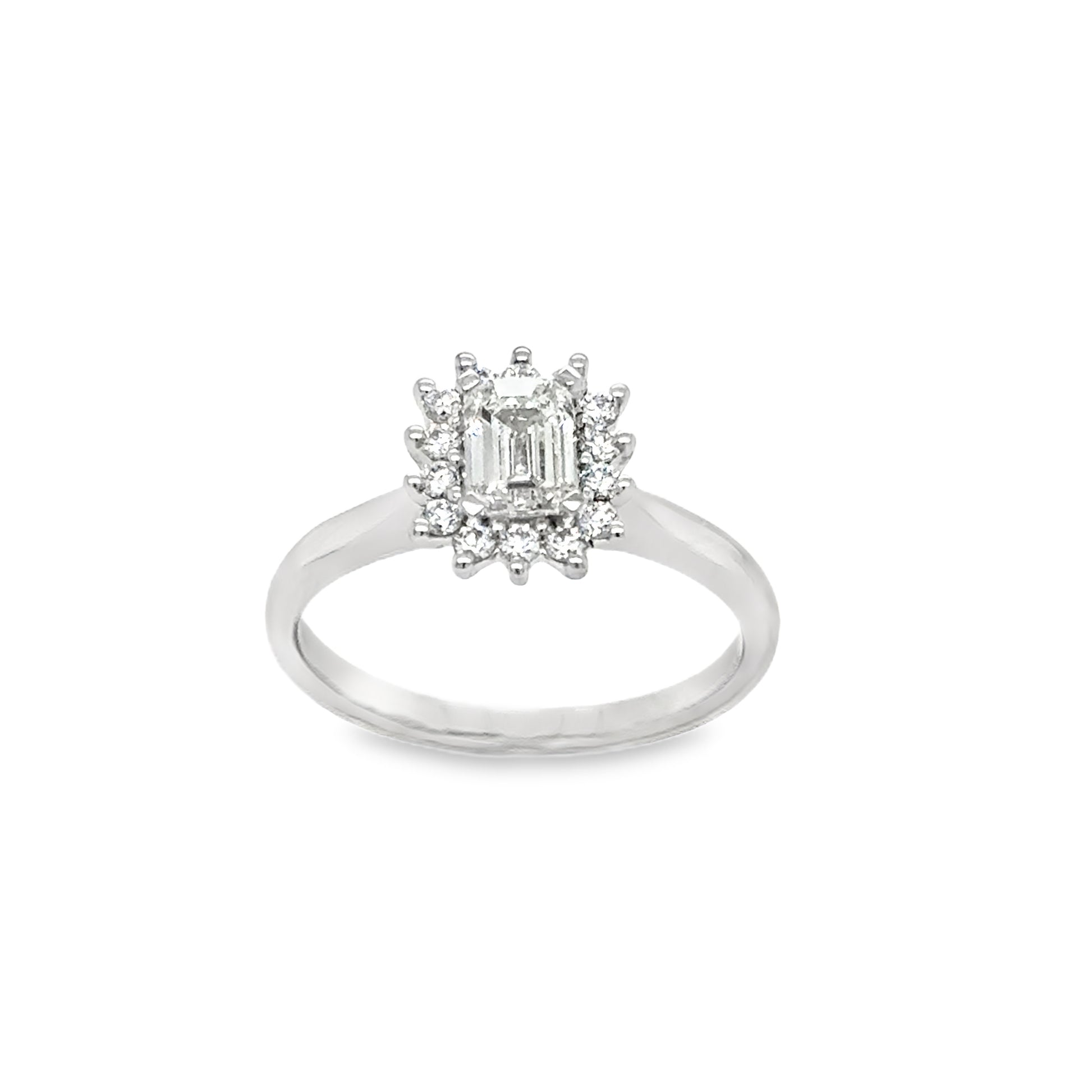 Platinum Emerald Cut Cluster Diamond Ring .75ct