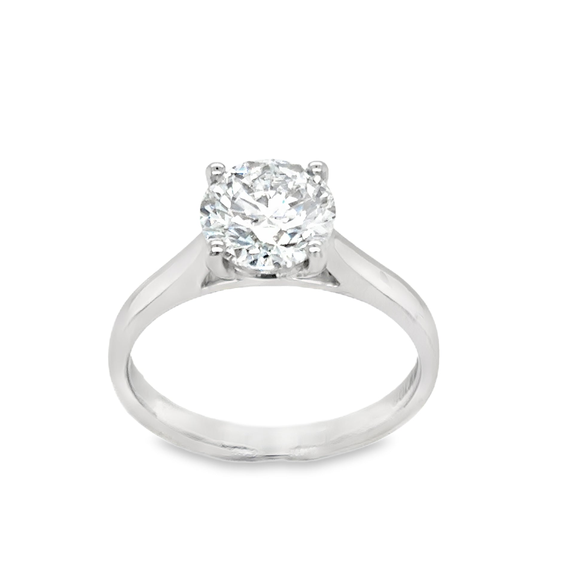 Platinum Four Claw Round Brilliant Solitaire Cultured Diamond Ring 1.50ct